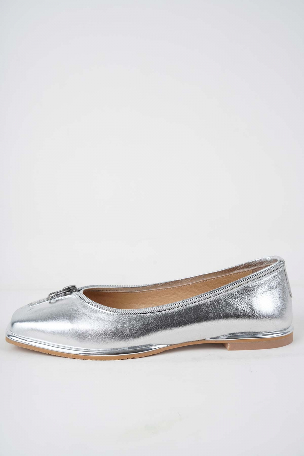 Hakiki Deri Gümüş Kadın Babet Ayakkabı 251135101