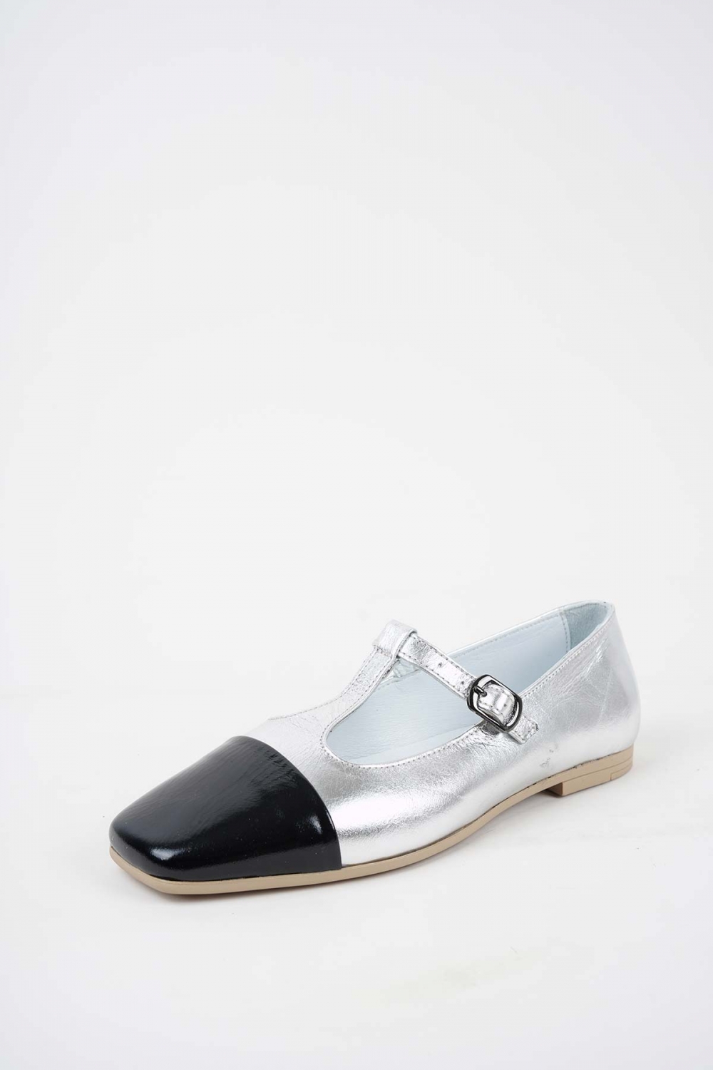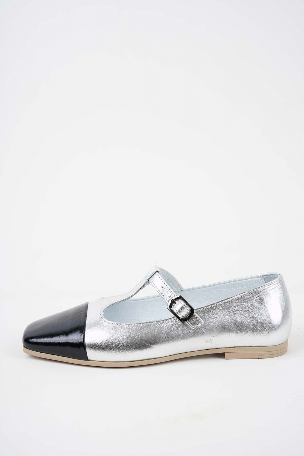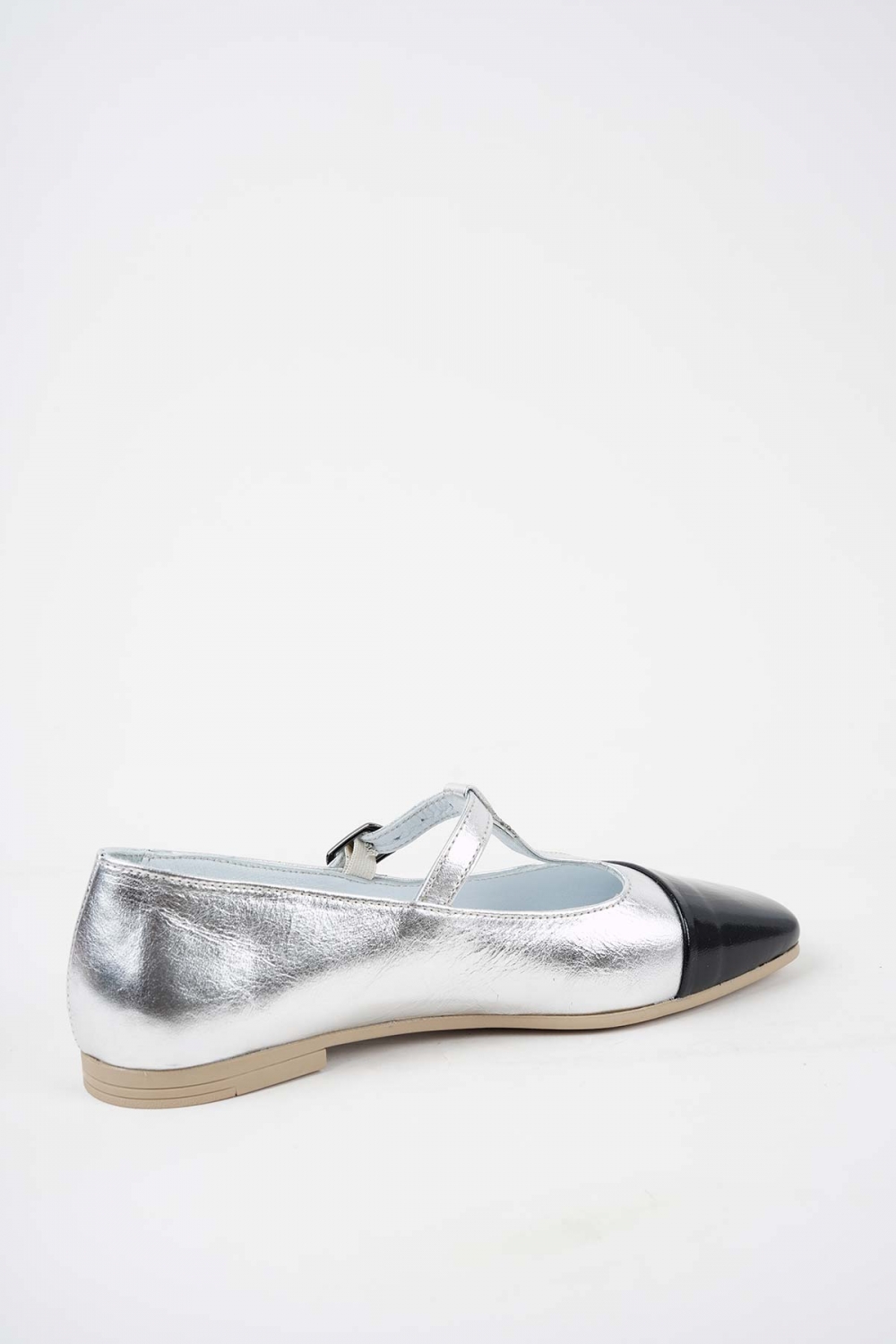 Hakiki Deri Gümüş-Siyah Rgn Kadın Babet Ayakkabı 251108102