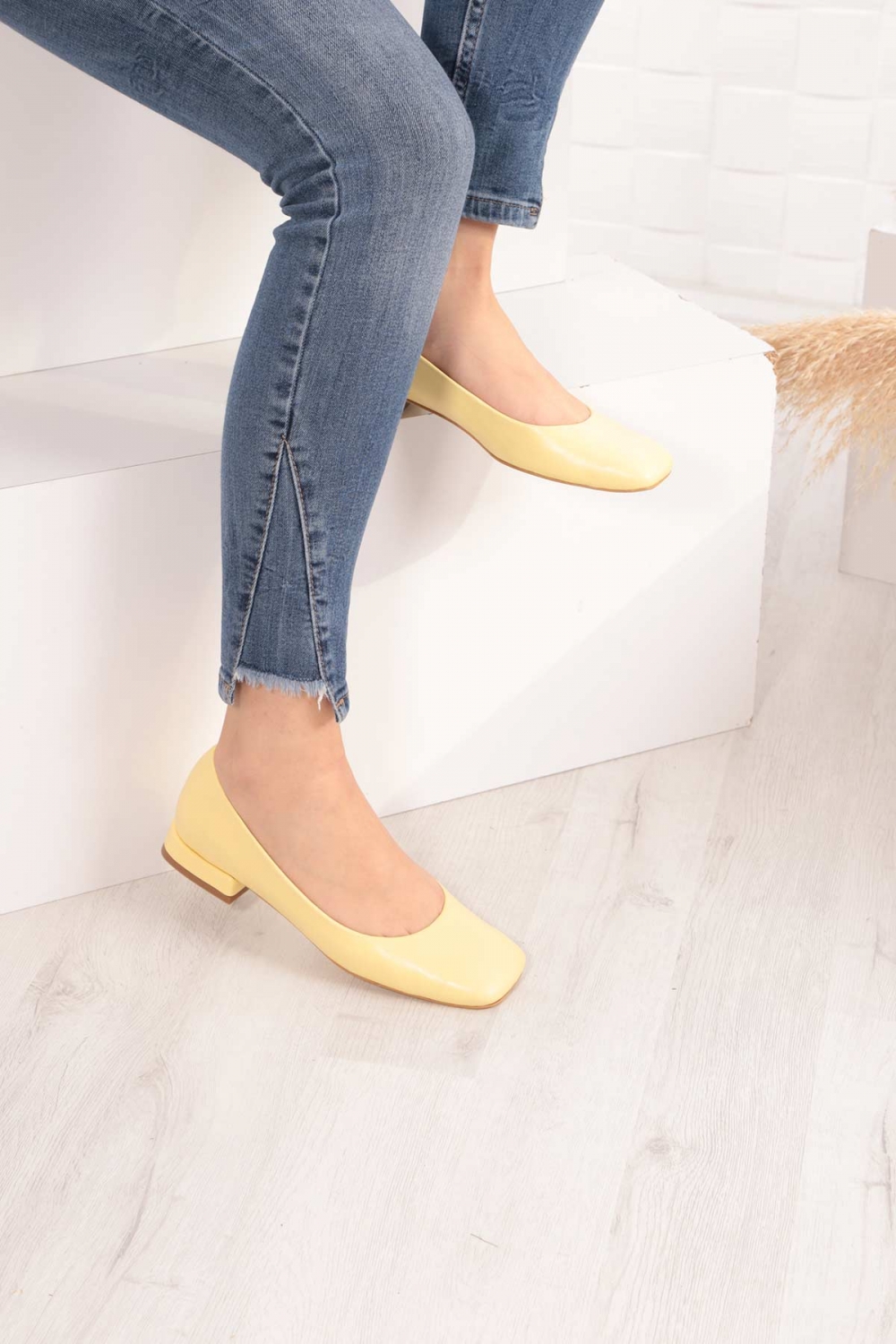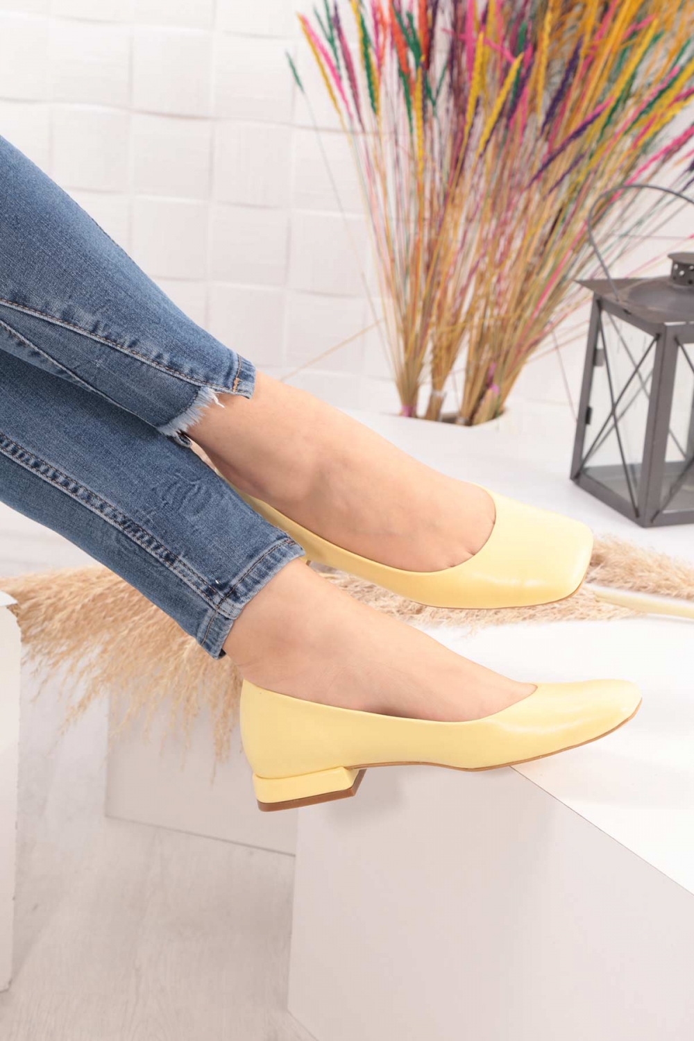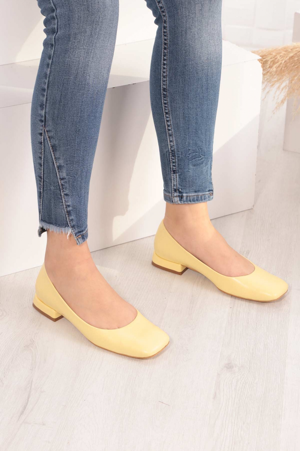 Hakiki Deri Limon Sarısı Kadın Babet Ayakkabı 211127102