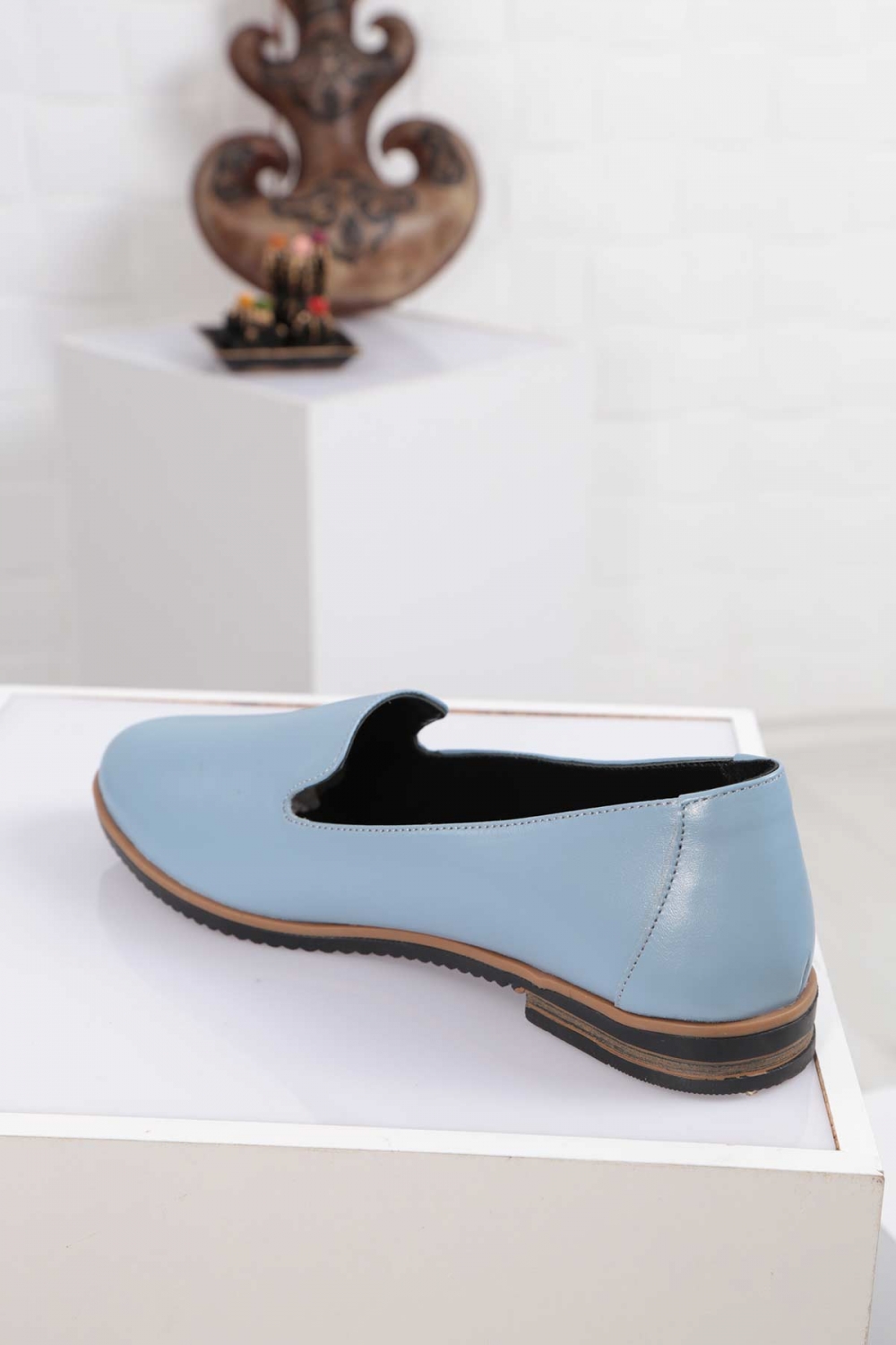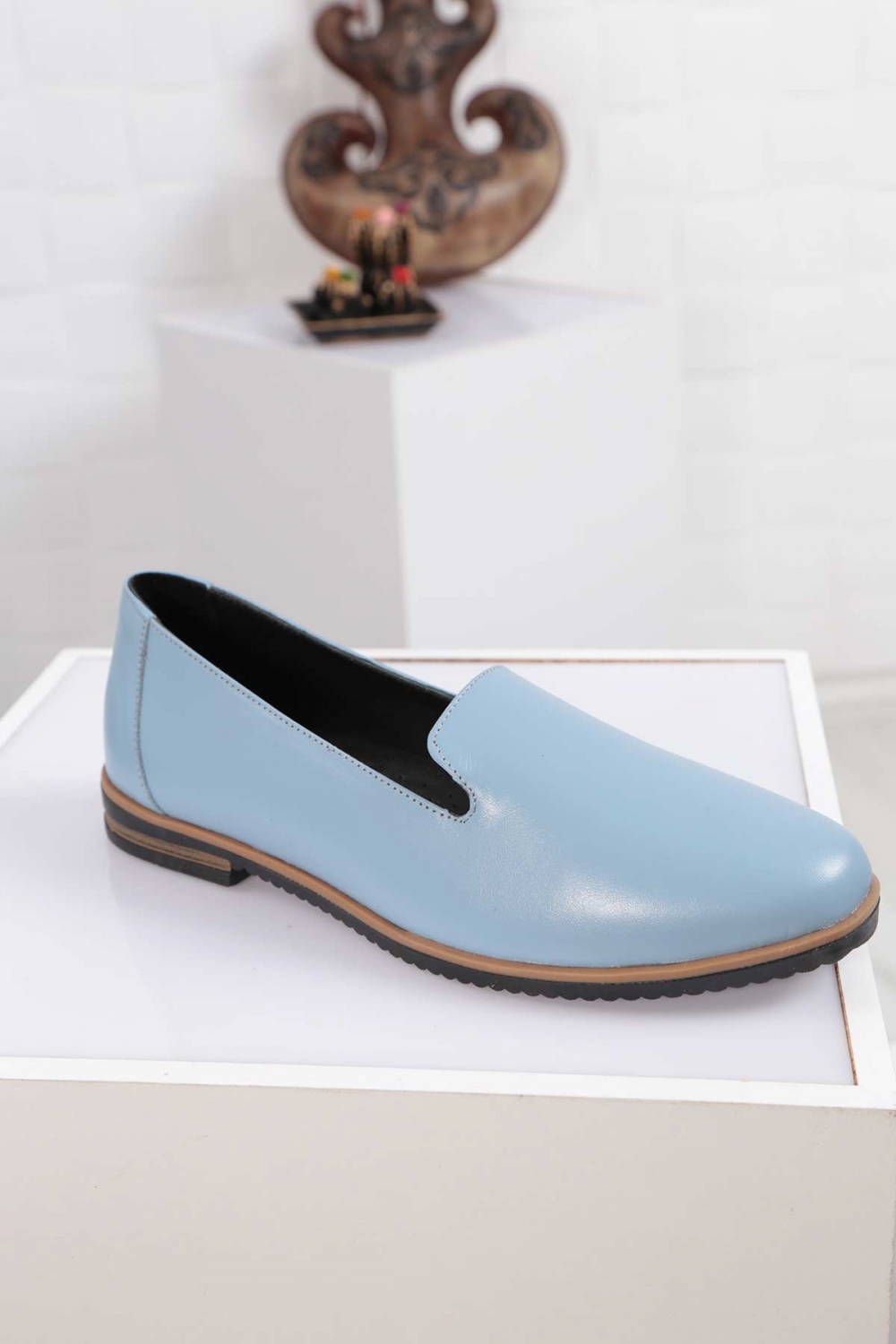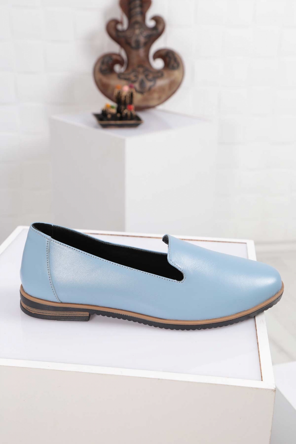 Hakiki Deri Mavi Kadın Babet Ayakkabı 212172102