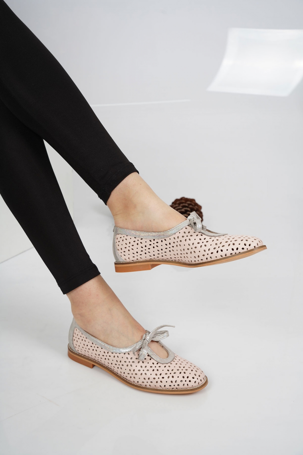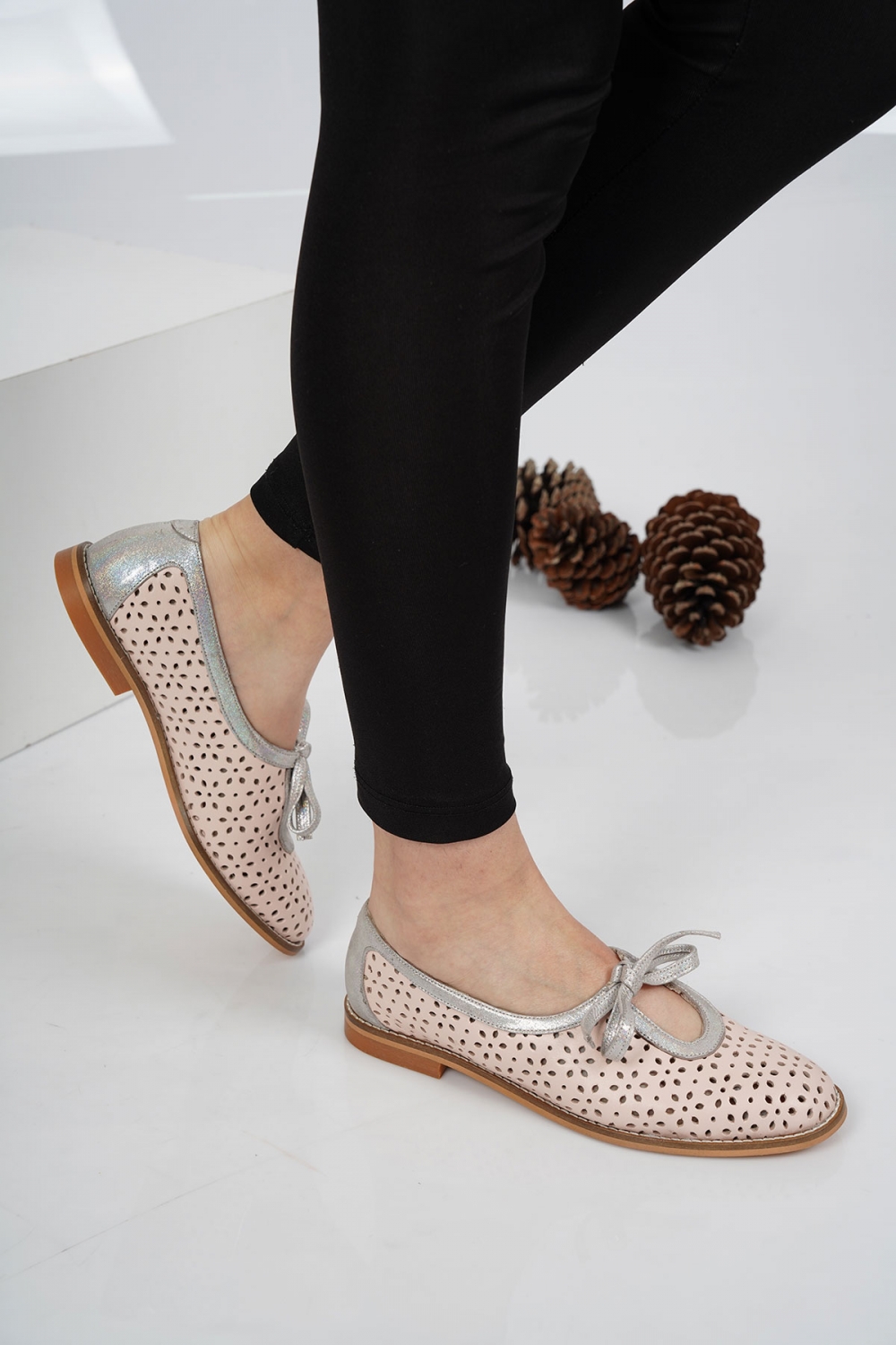 Hakiki Deri Pudra-Hologram Kadın Babet Ayakkabı 231127114