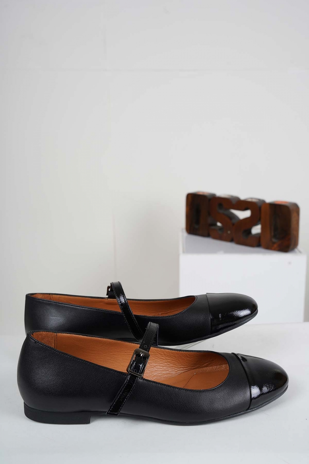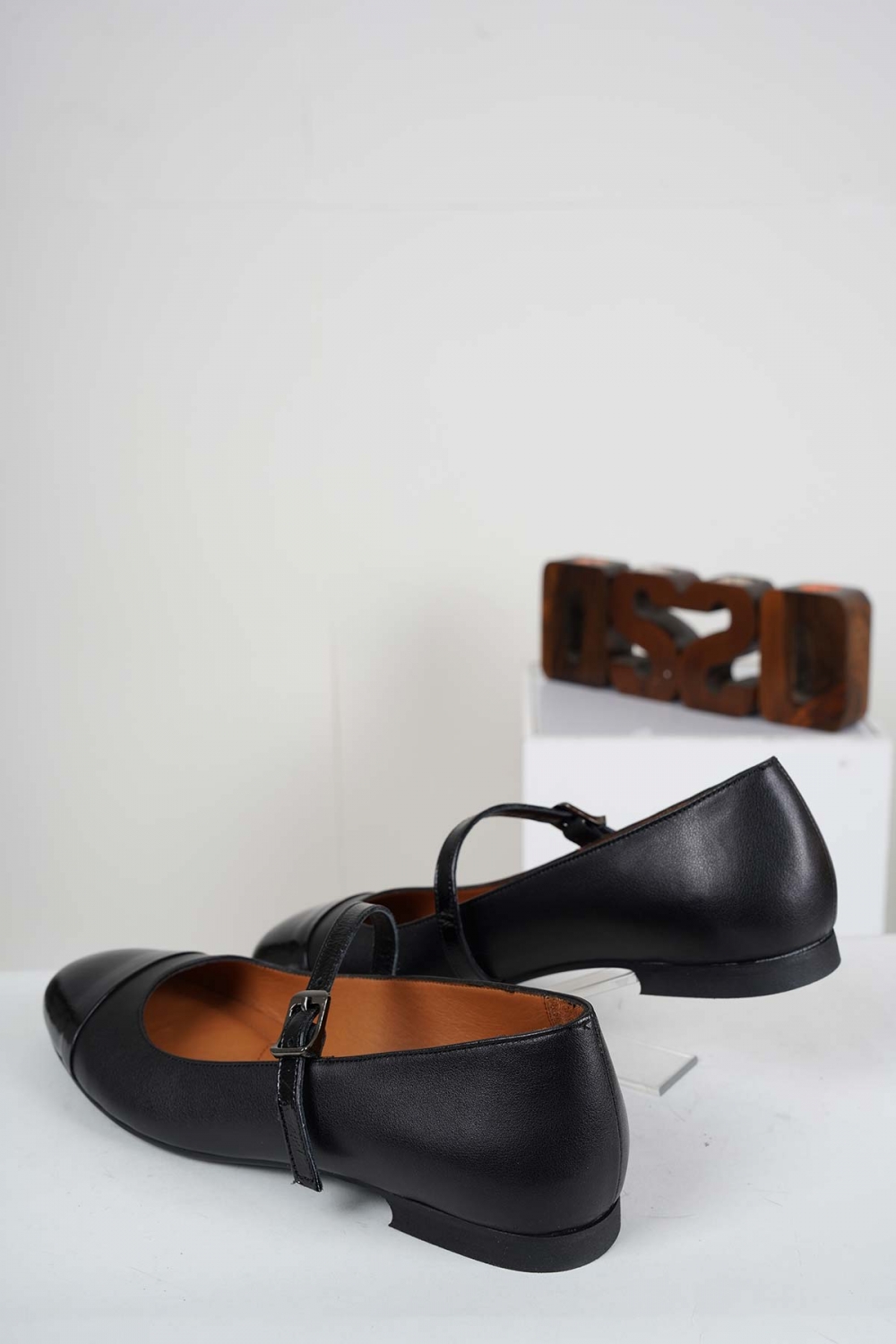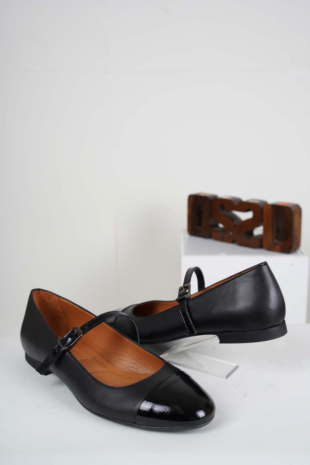 Hakiki Deri Siyah Rugan-Siyah Kadın Babet Ayakkabı 241127109
