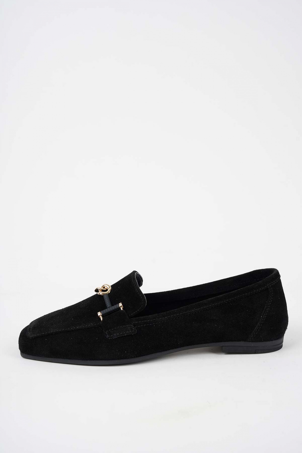 Hakiki Deri Siyah Süet Kadın Babet Ayakkabı 251108104