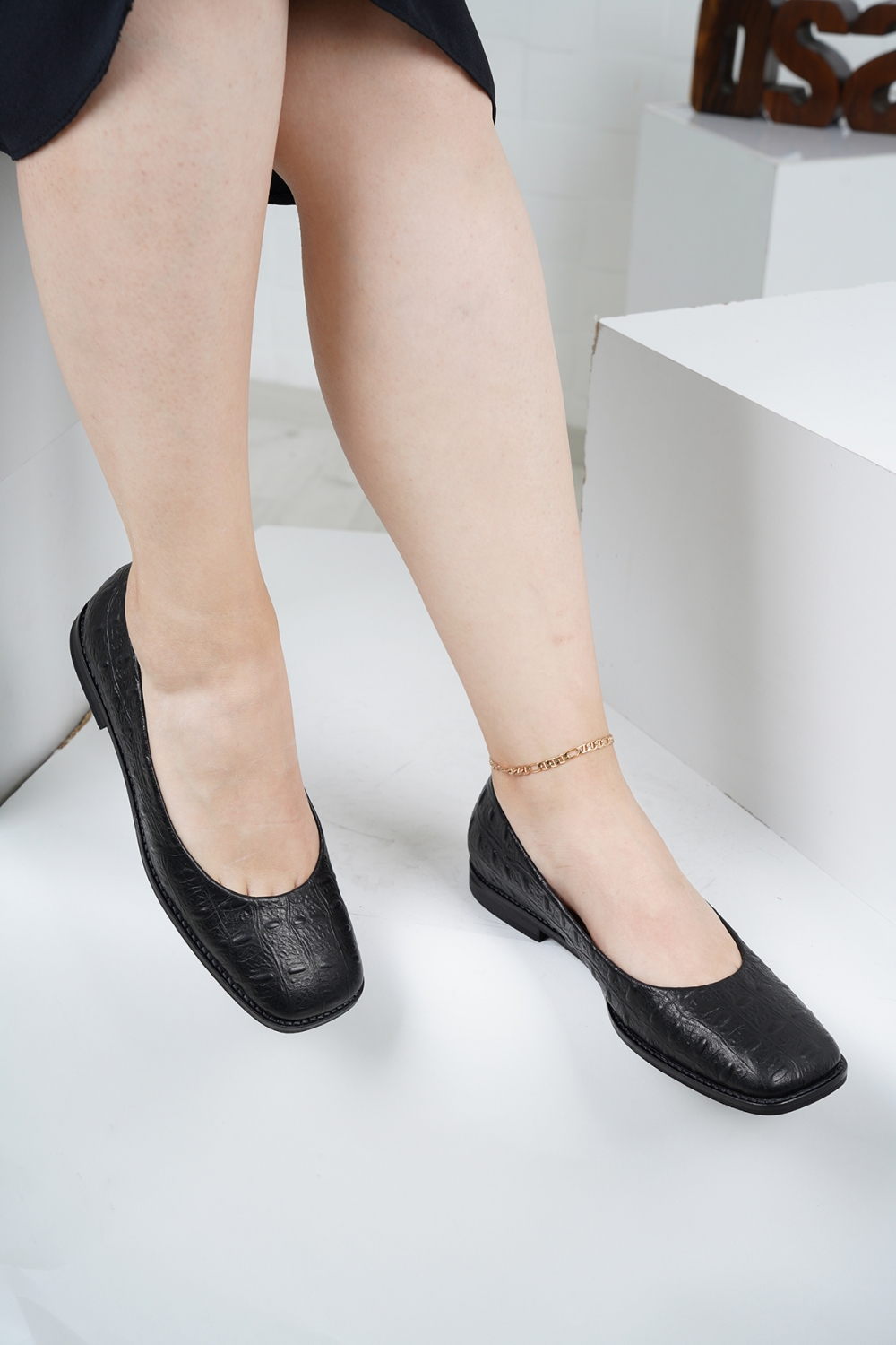 Hakiki Deri Siyah Timsah Kadın Babet Ayakkabı 222127103
