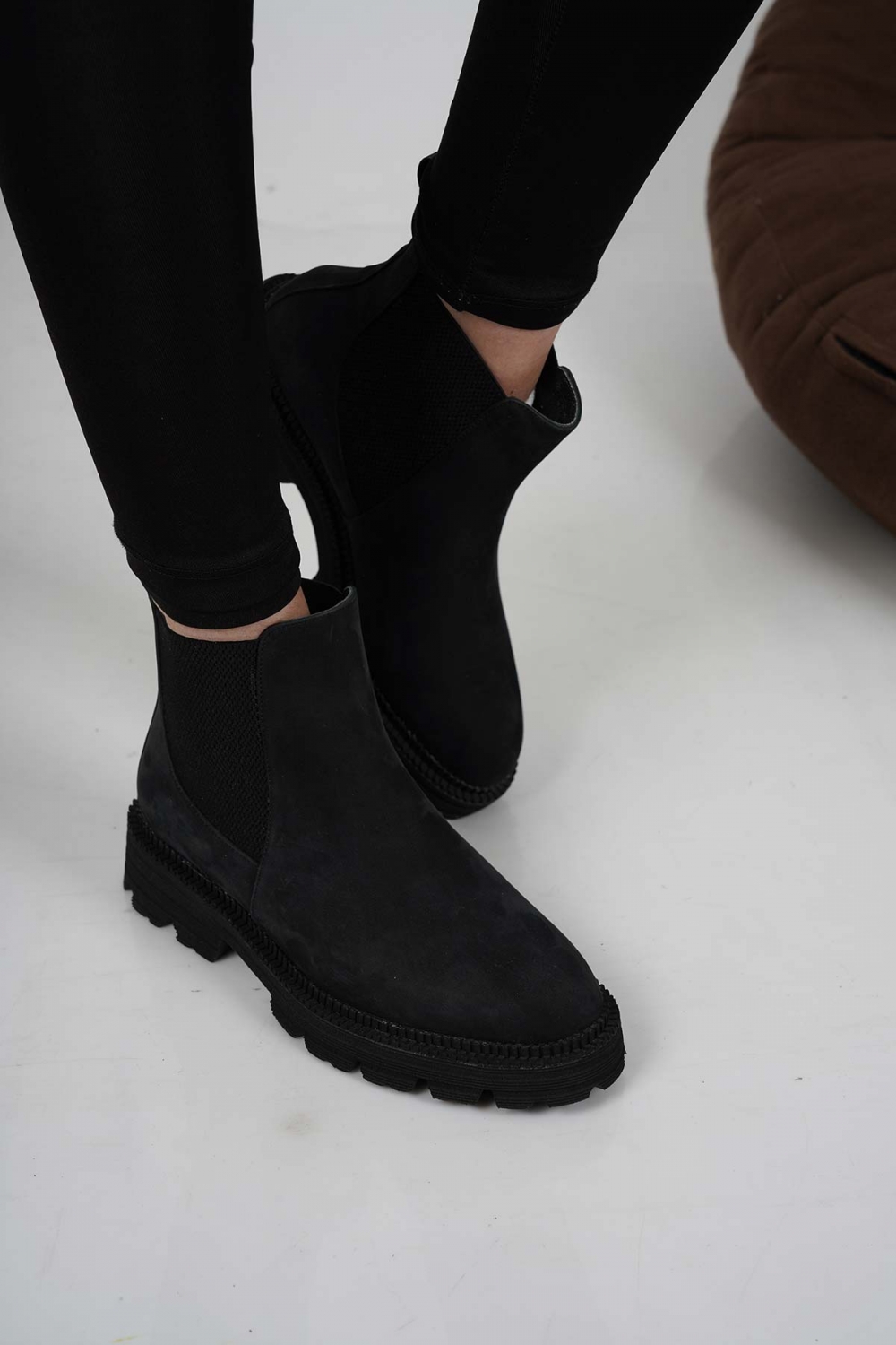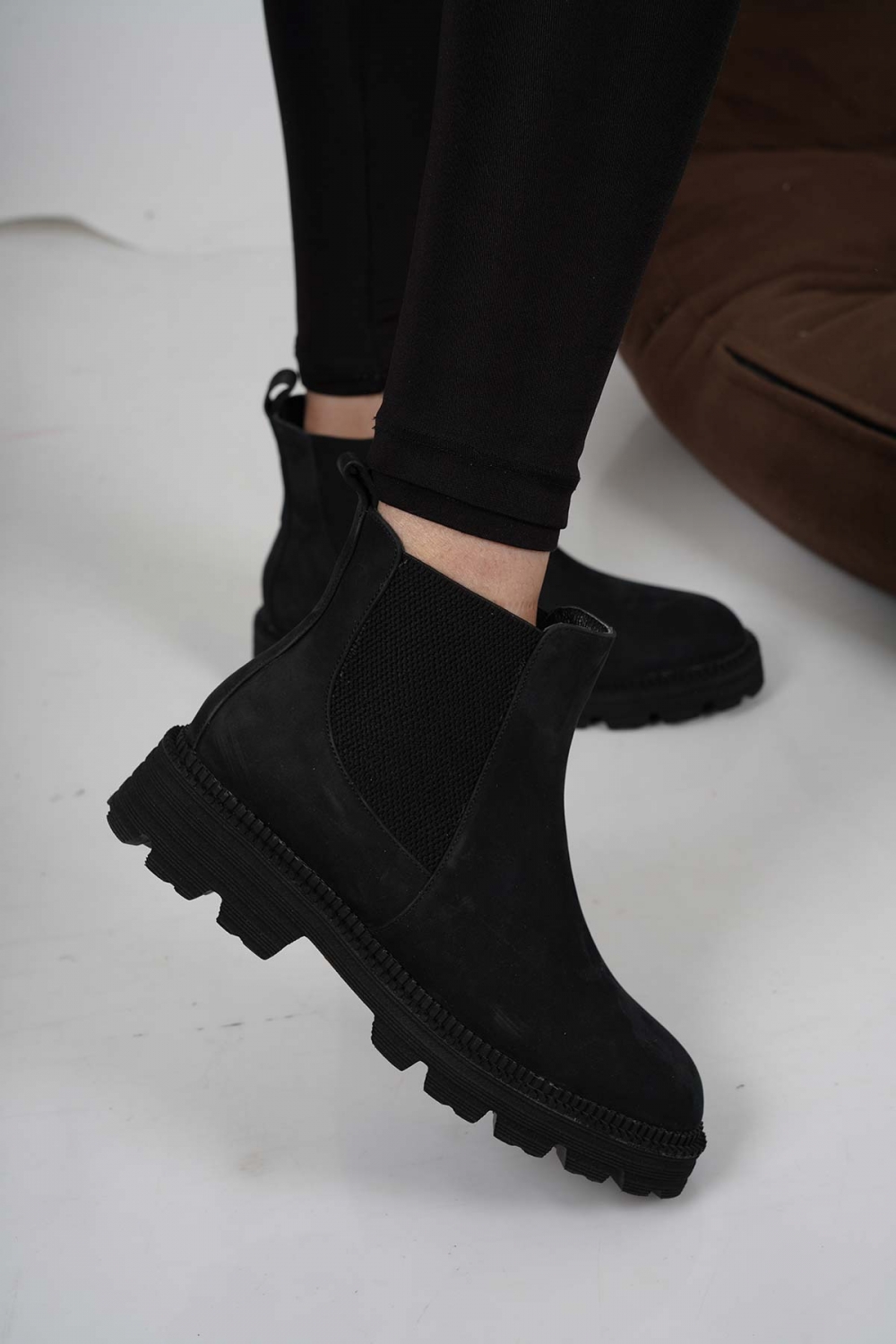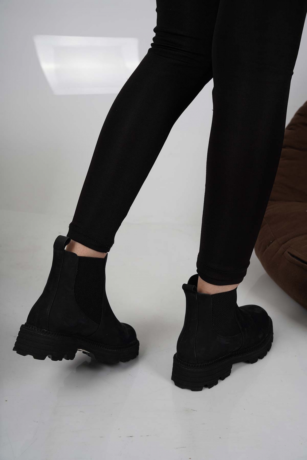 Hakiki Deri Siyah Nubuk Kadın Casual Bot 232127205