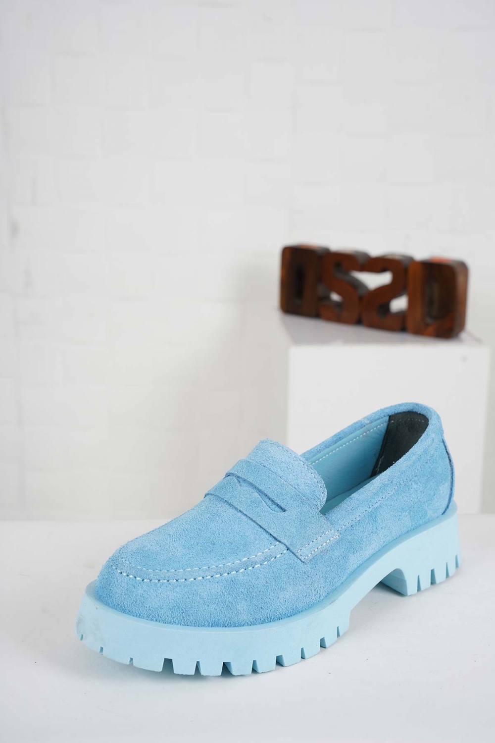Hakiki Deri Bebe Mavi Süet Kadın Casual Ayakkabı 231108119