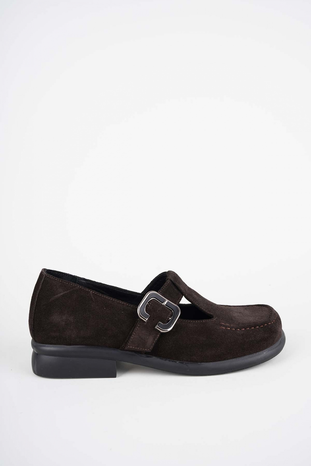 Hakiki Deri Kahve Süet Kadın Loafer Ayakkabı 252134104