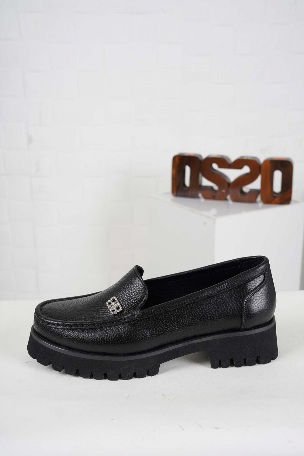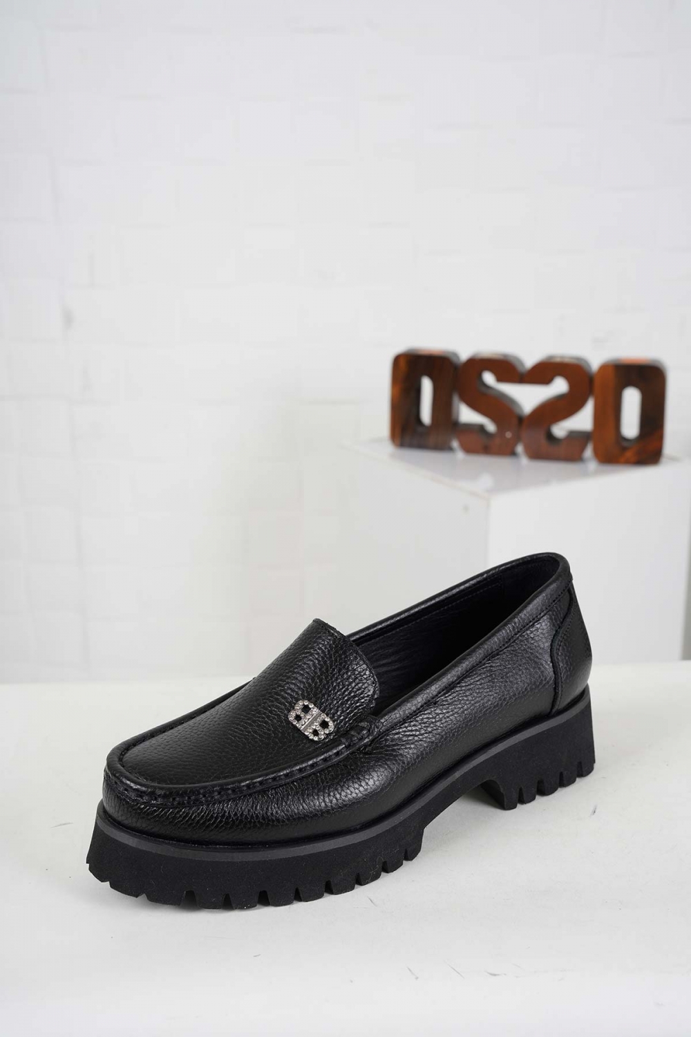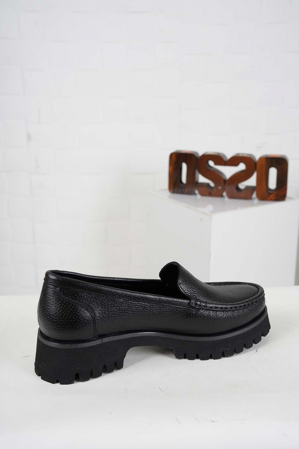 Hakiki Deri Siyah İnce Floter Kadın Loafer Ayakkabı 242134100