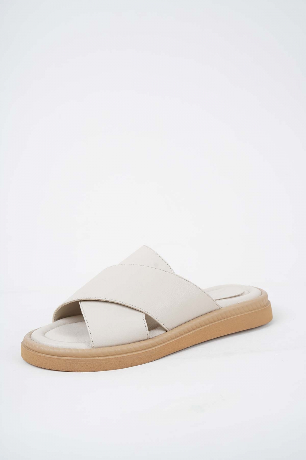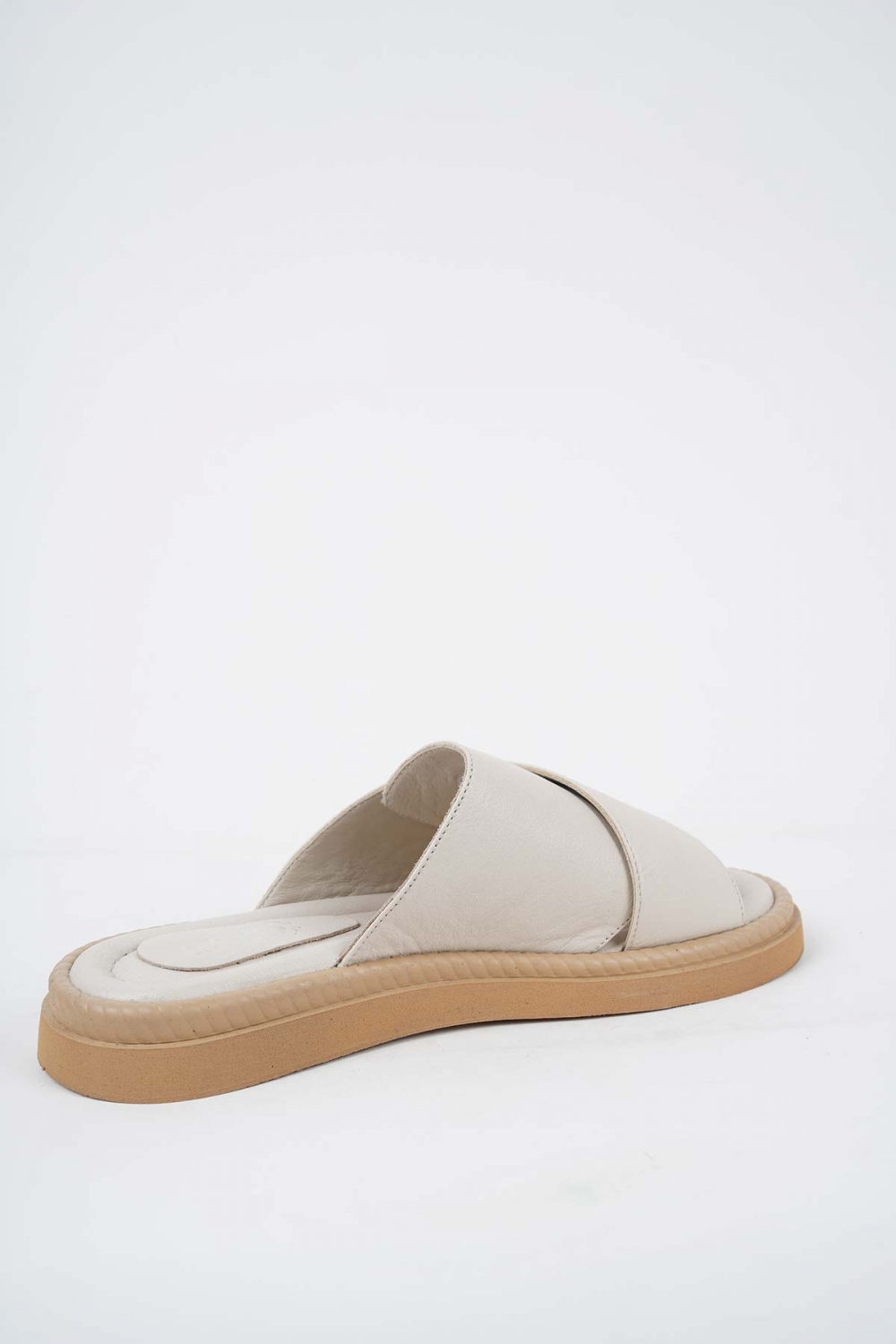 Hakiki Deri Bej Kadın Düz Terlik 251173602