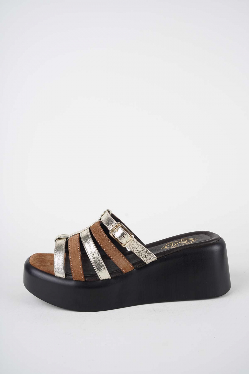 Hakiki Deri Dore-Taba Süet Kadın Dolgu Topuklu Terlik 261114601