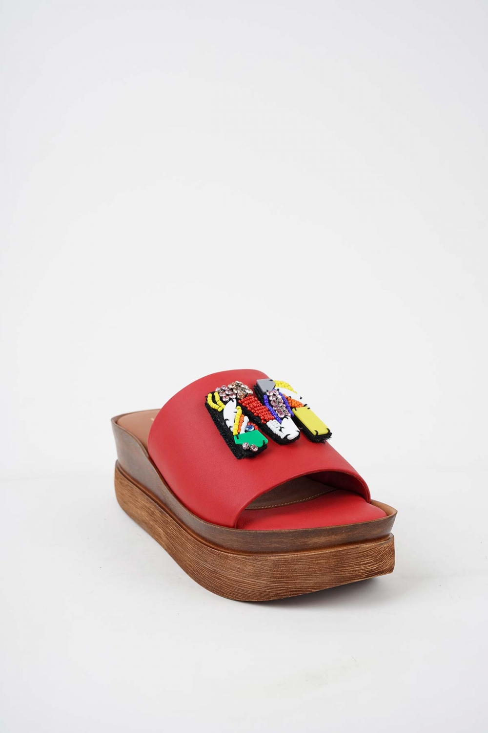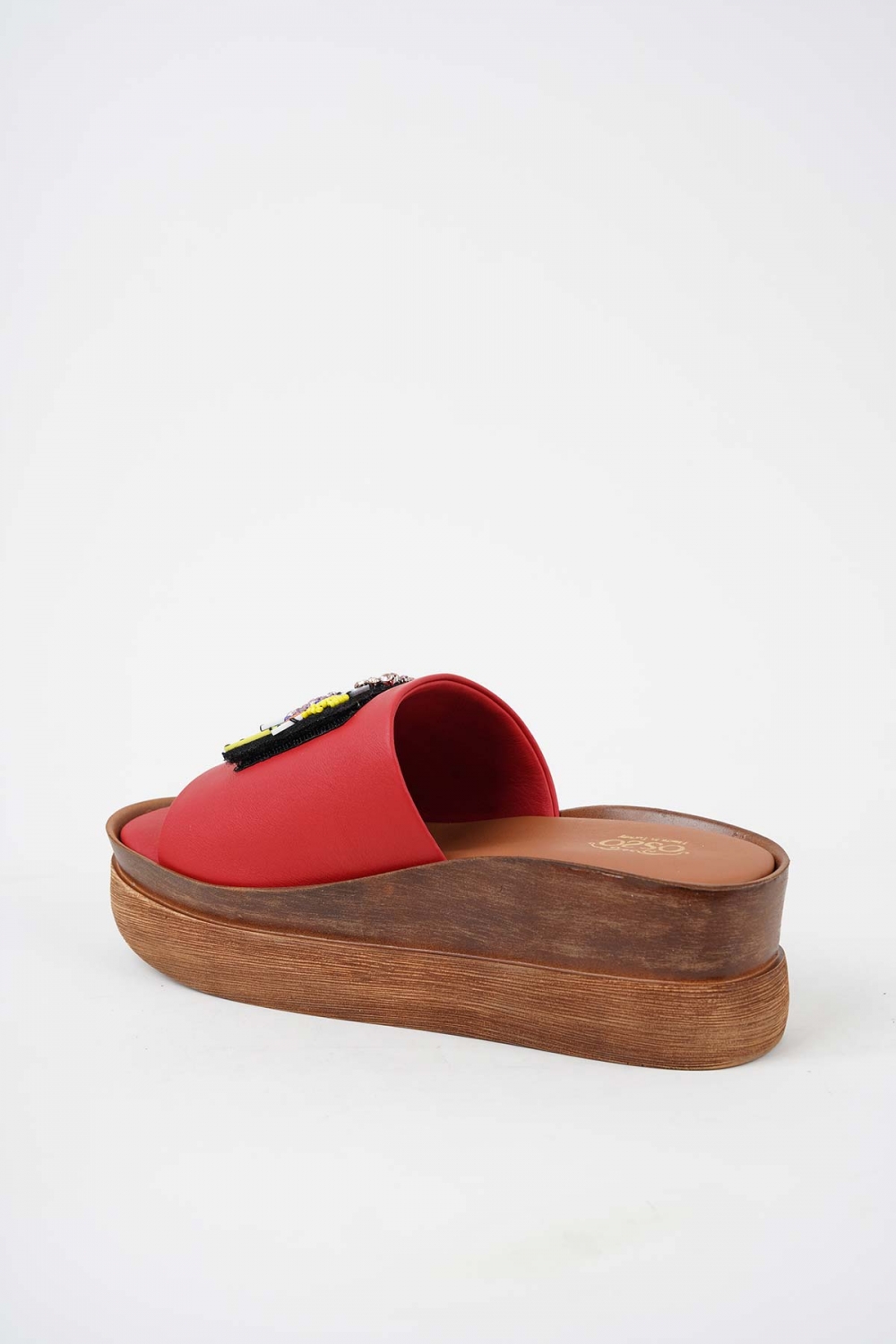 Hakiki Deri Kırmızı_Kahve Tbn Kadın Dolgu Topuklu Terlik 251114601