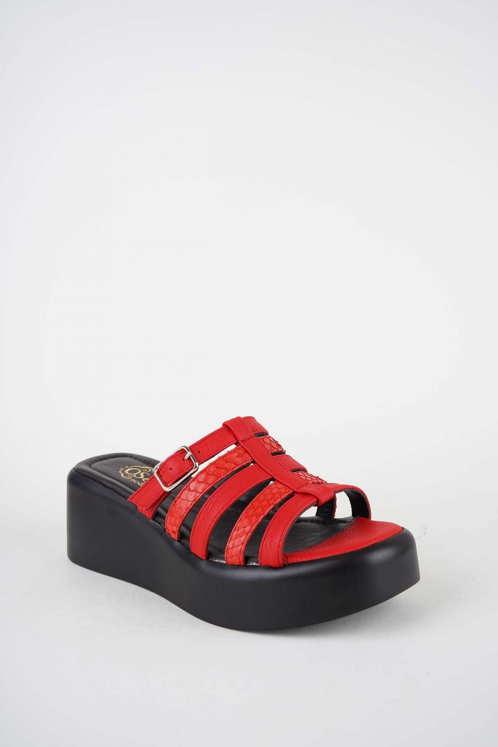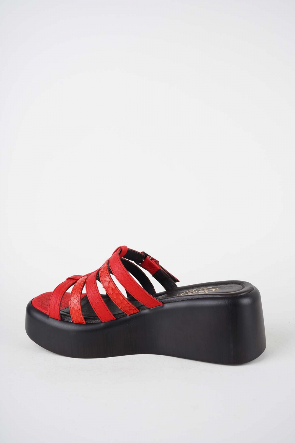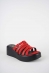 Hakiki Deri Kırmızı-Yılan Bas. Kadın Dolgu Topuklu Terlik 261114601