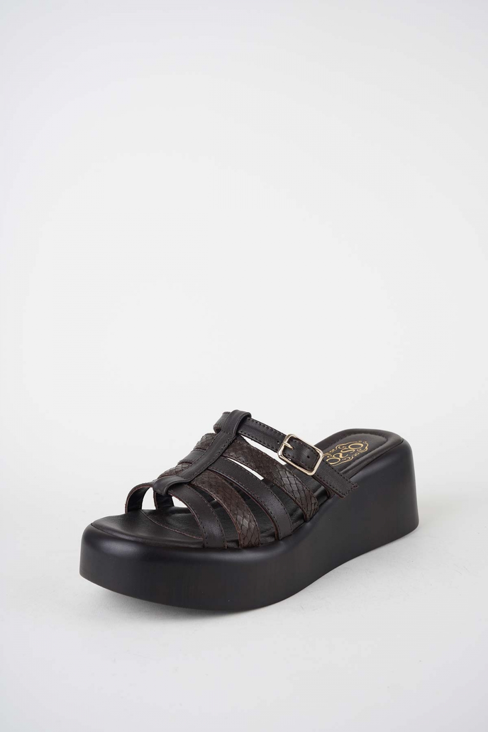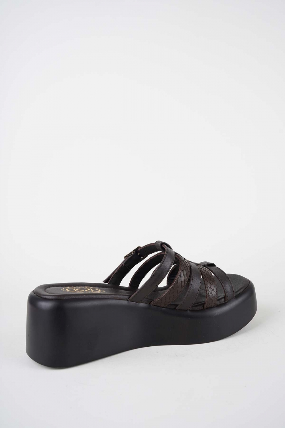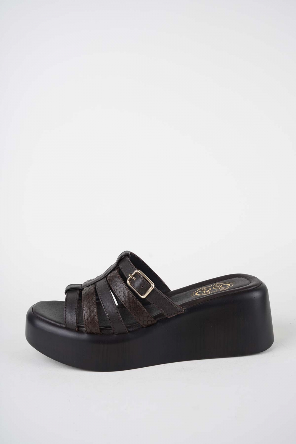 Hakiki Deri Koyu Kahve-Yılan Bas. Kadın Dolgu Topuklu Terlik 261114601