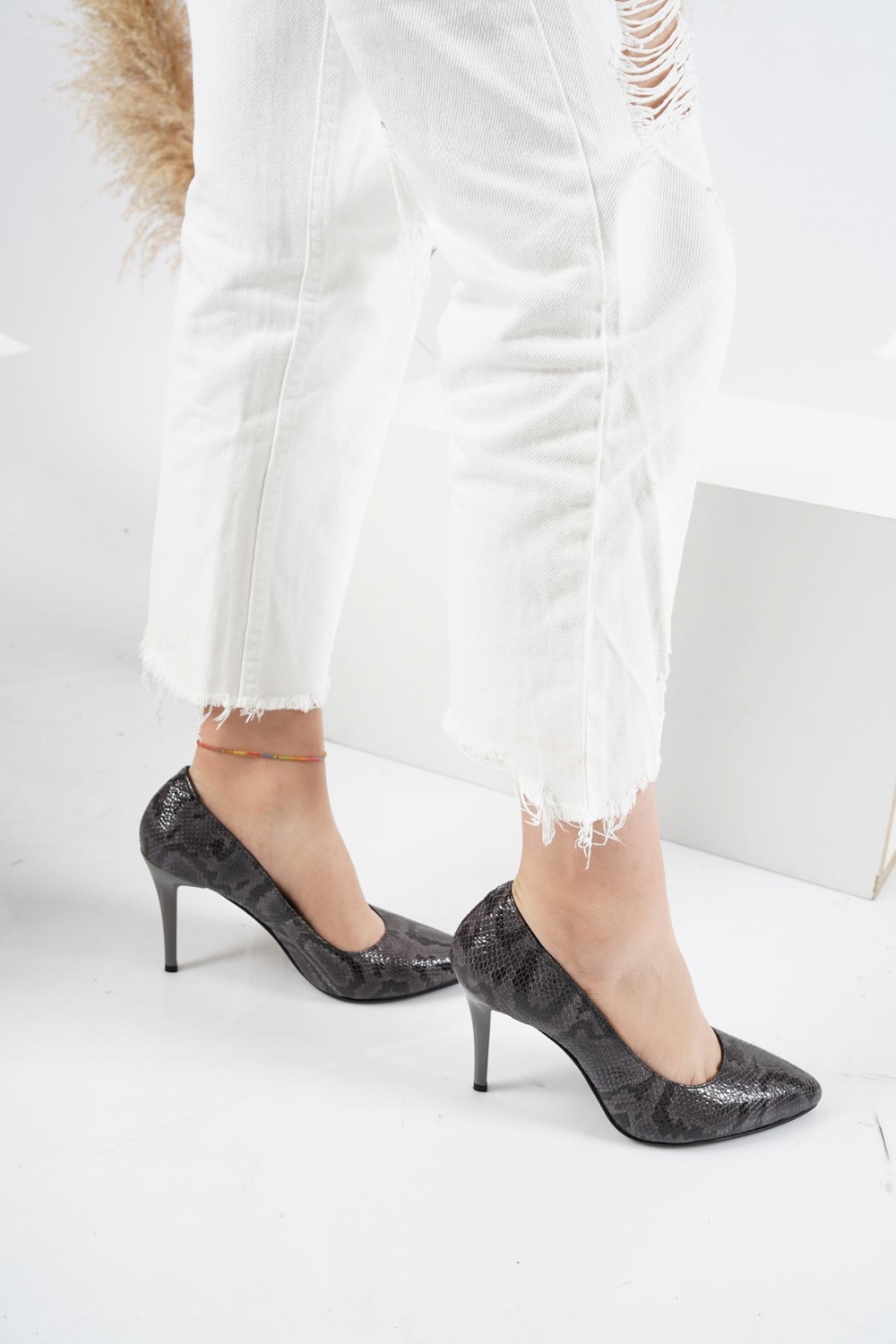 Hakiki Deri Gri Yılan Kadın Stiletto Ayakkabı 221110105