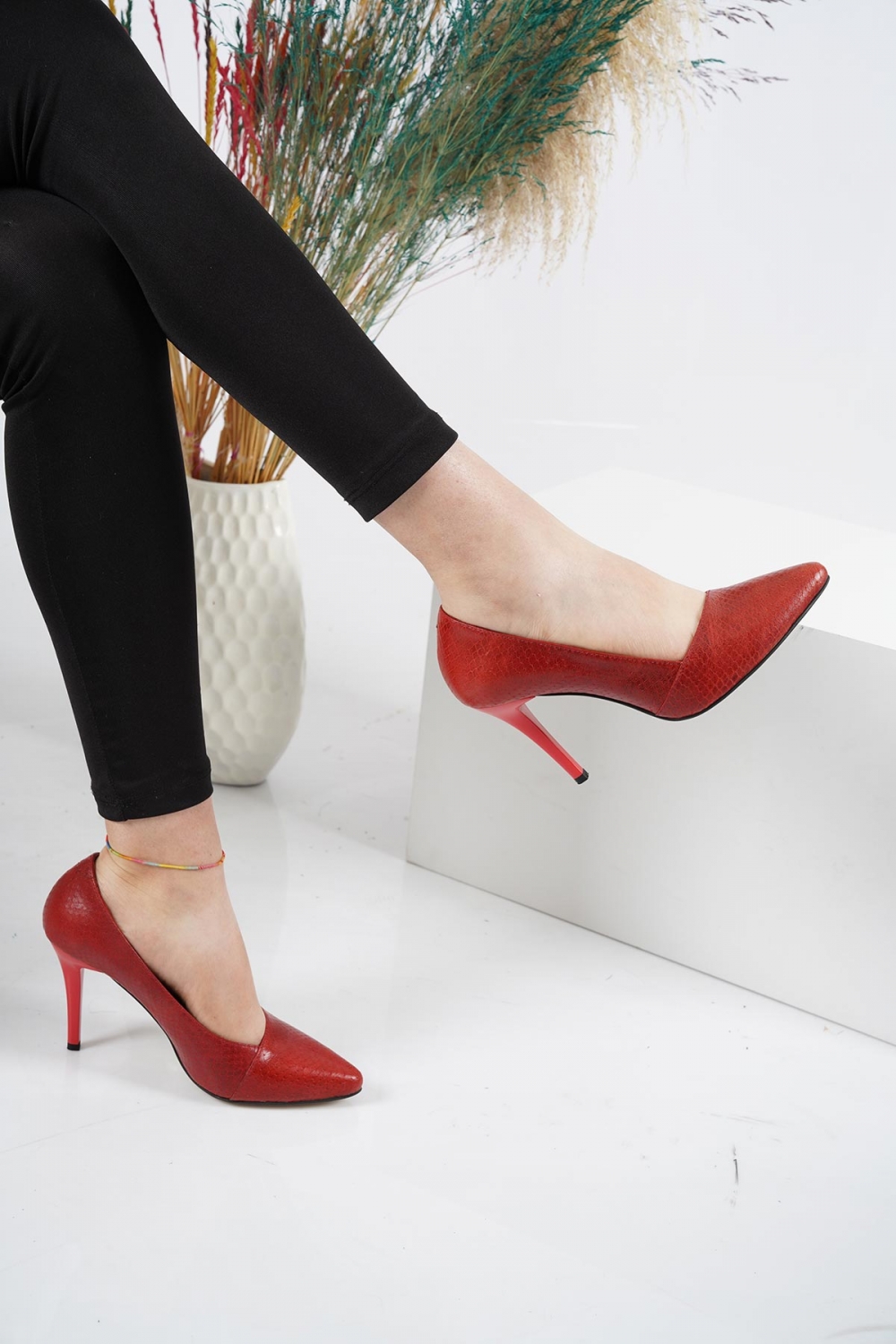 Hakiki Deri Kırmızı Yılan Kadın Stiletto Ayakkabı 221110105