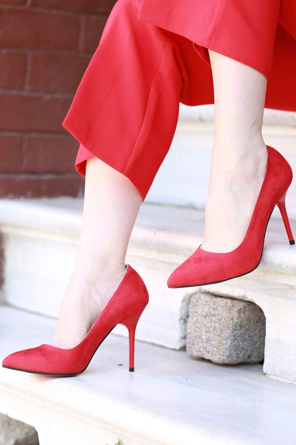 Kırmızı Süet Kadın Stiletto Ayakkabı 202127101