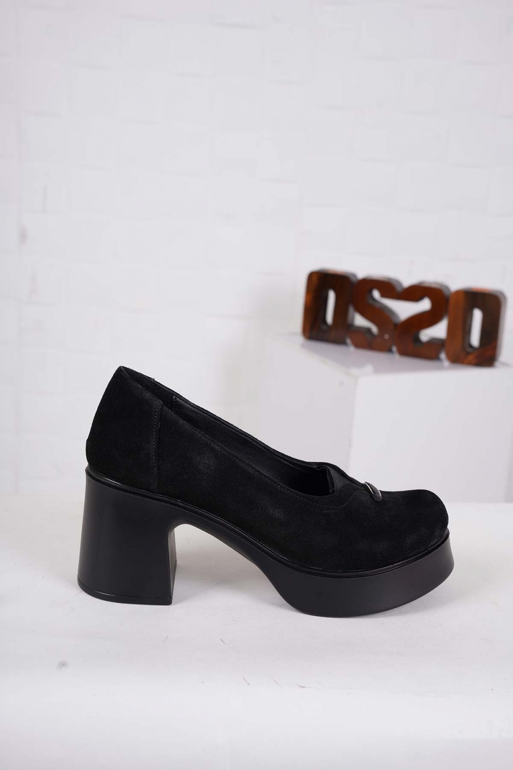 Hakiki Deri Siyah Süet Kadın Topuklu Ayakkabı 242229102