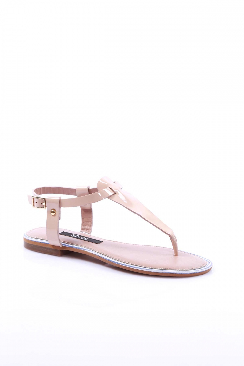 Hakiki Deri Açık Vizon Rugan Kadın Düz Sandalet 201110606