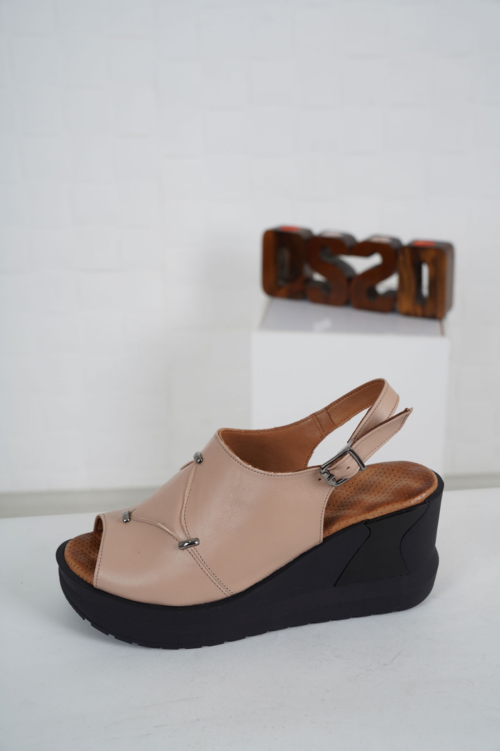 Hakiki Deri Badem Kadın Dolgu Topuk Sandalet 231229504