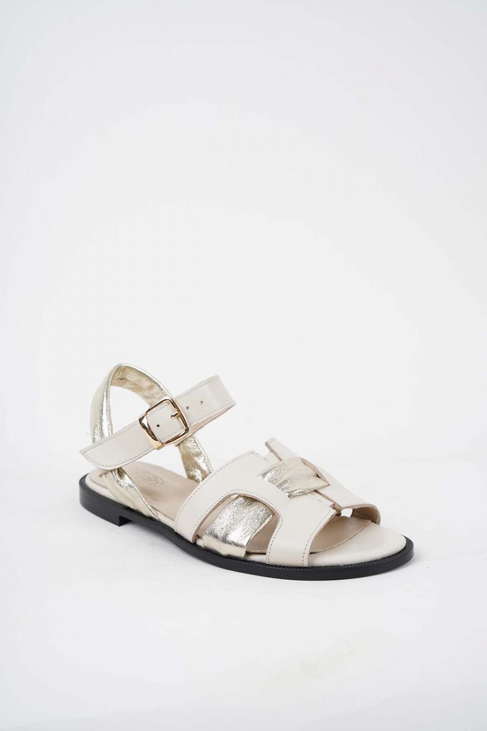 Hakiki Deri Bej-Altın Kadın Düz Sandalet 251127503