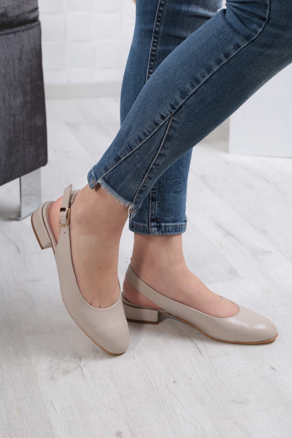Hakiki Deri Bej Kadın Burun Kapalı Sandalet 211127531