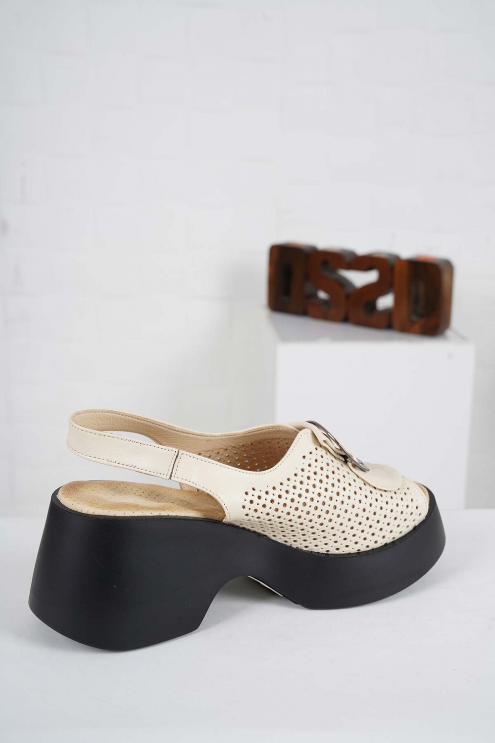 Hakiki Deri Bej Kadın Dolgu Topuk Sandalet 241229504