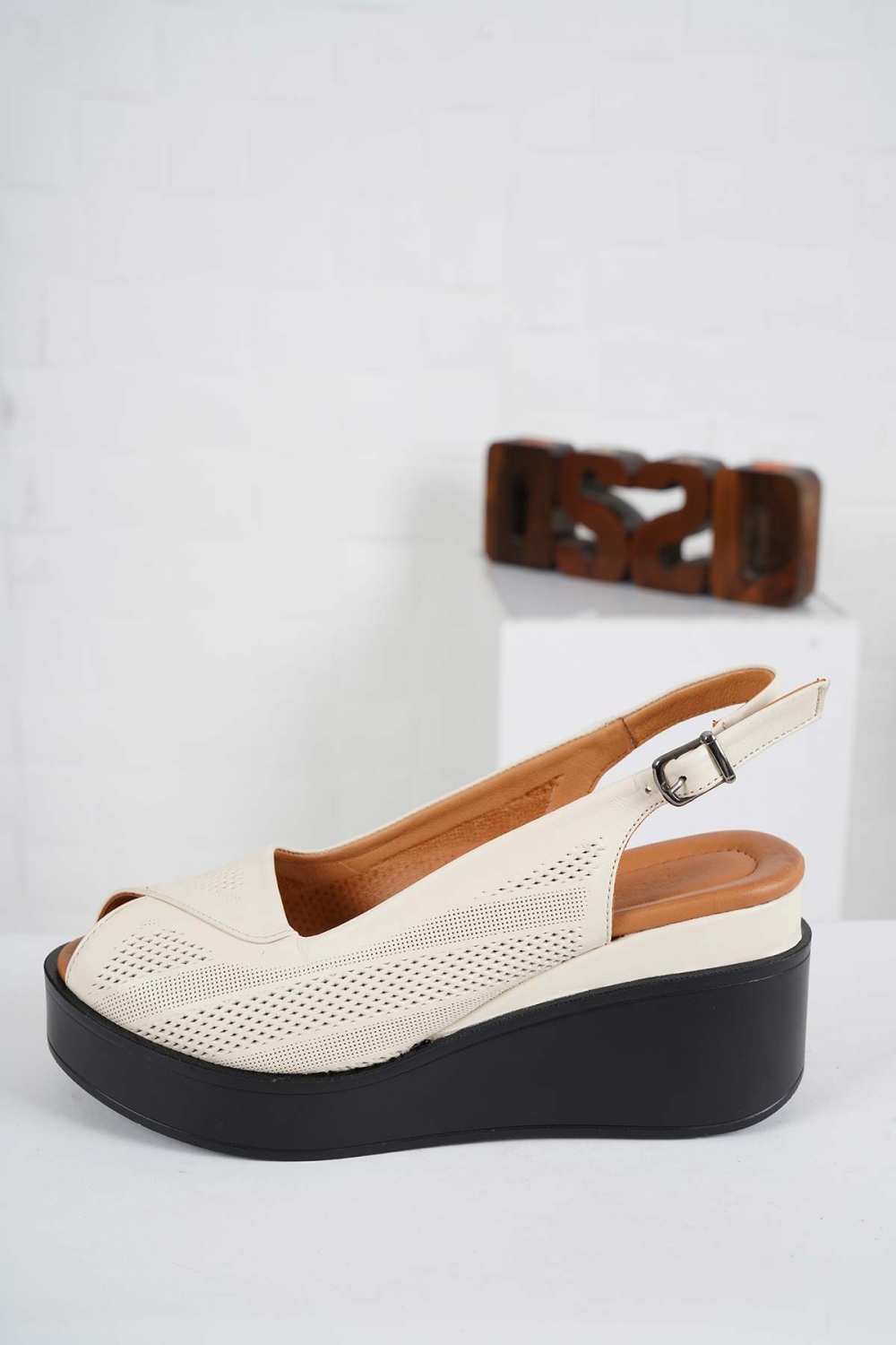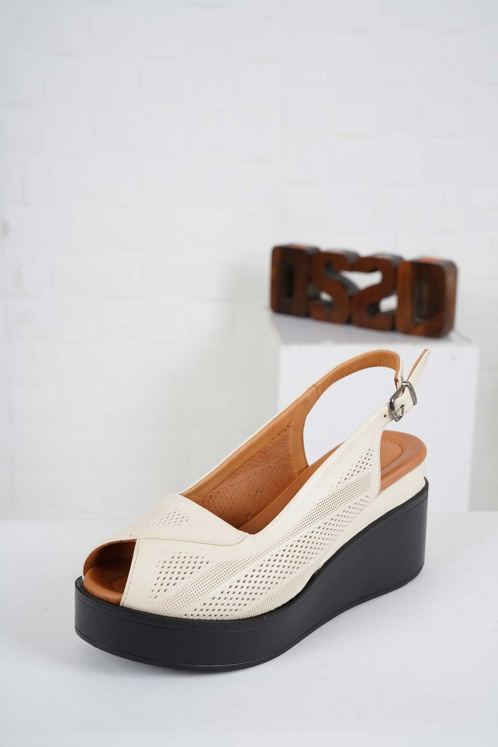 Hakiki Deri Bej Kadın Dolgu Topuk Sandalet 241229510