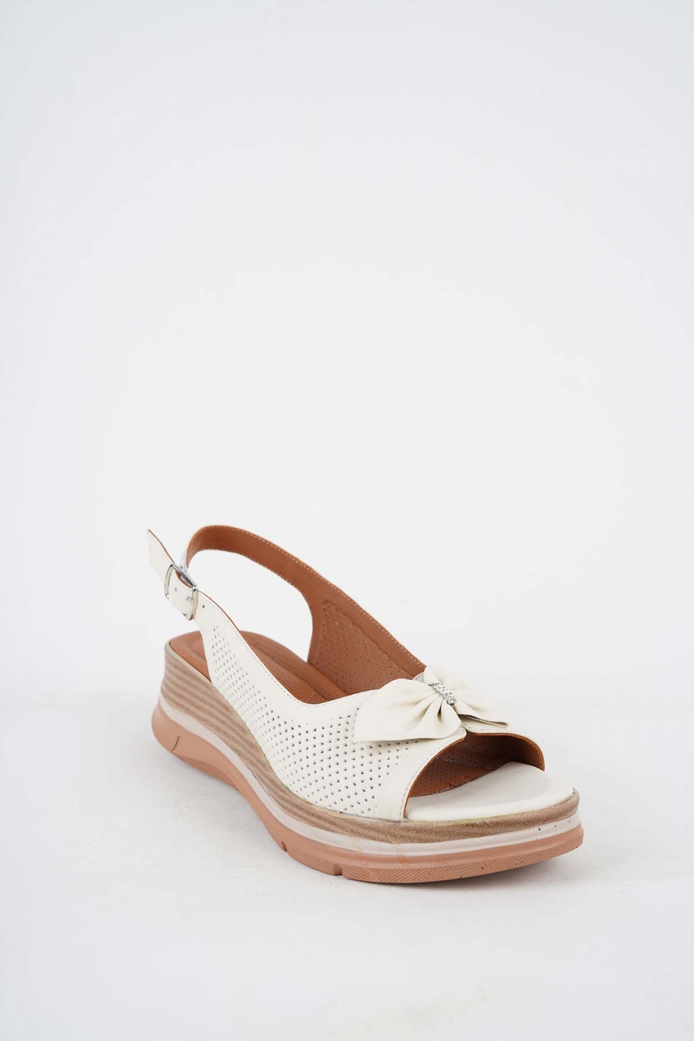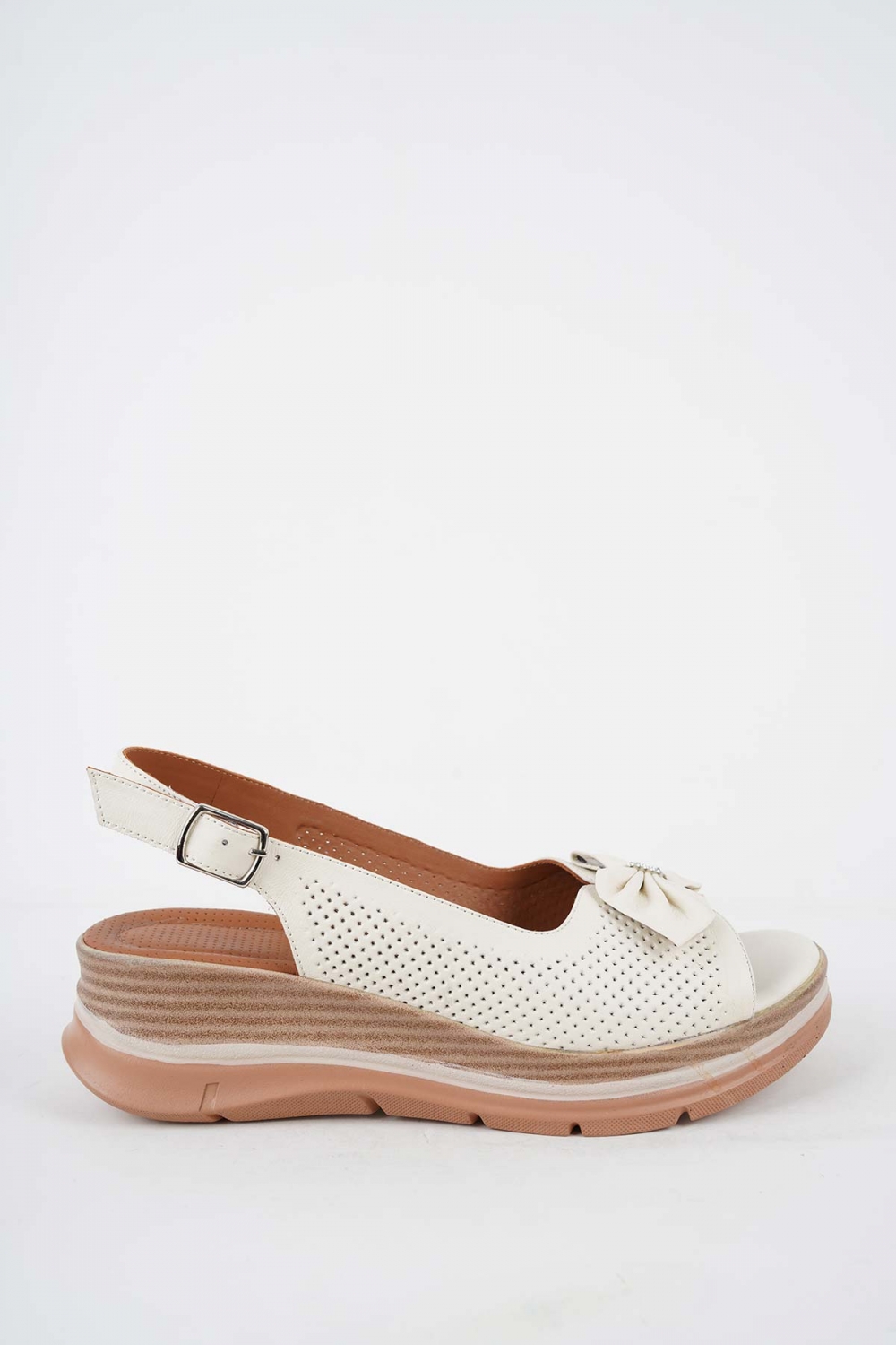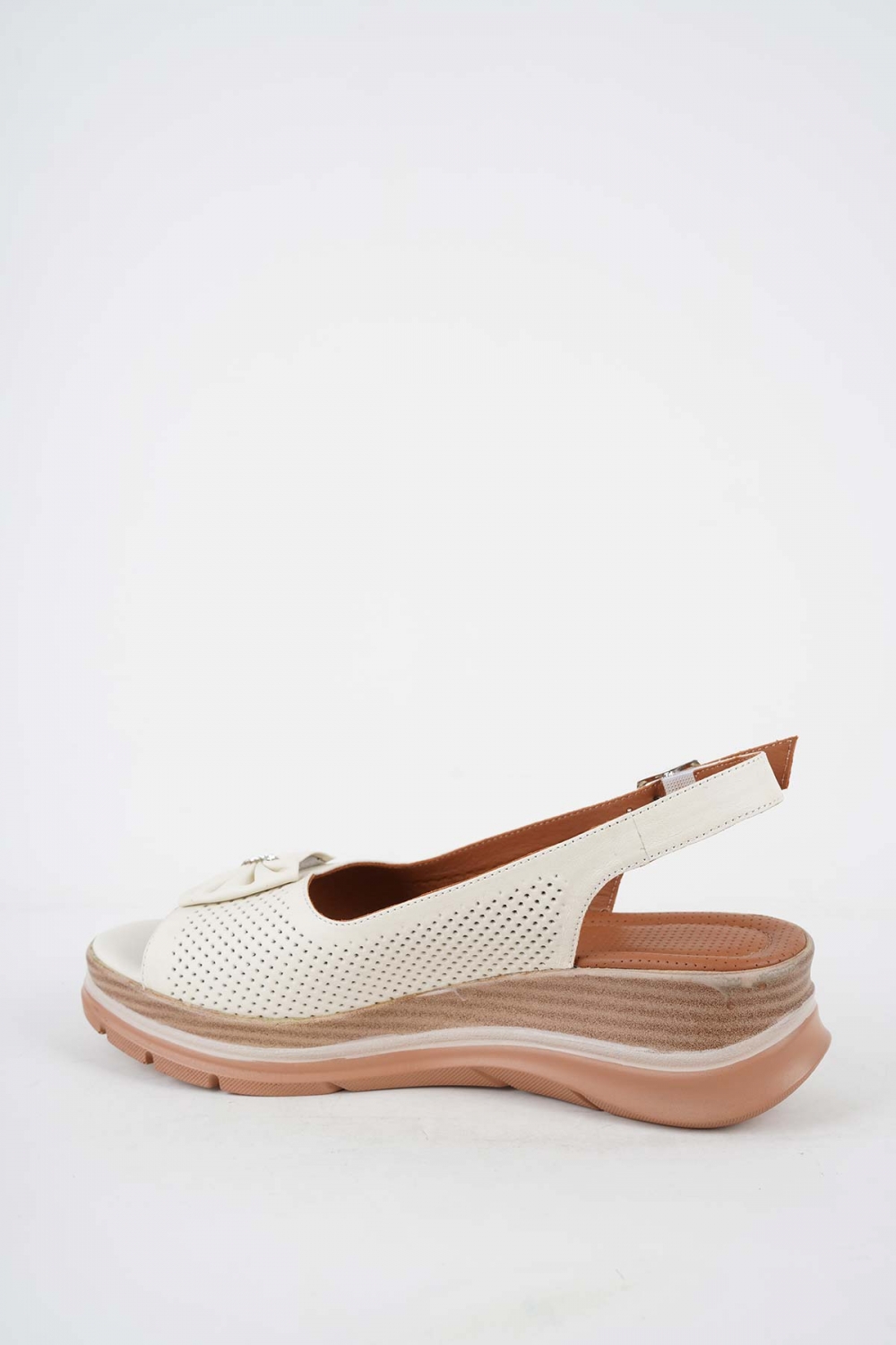 Hakiki Deri Bej Kadın Dolgu Topuk Sandalet 251127504