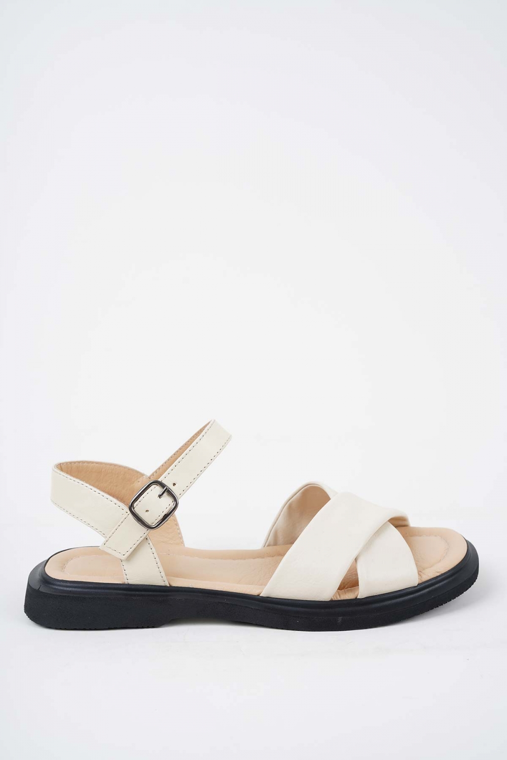 Hakiki Deri Bej Kadın Düz Sandalet 251189506
