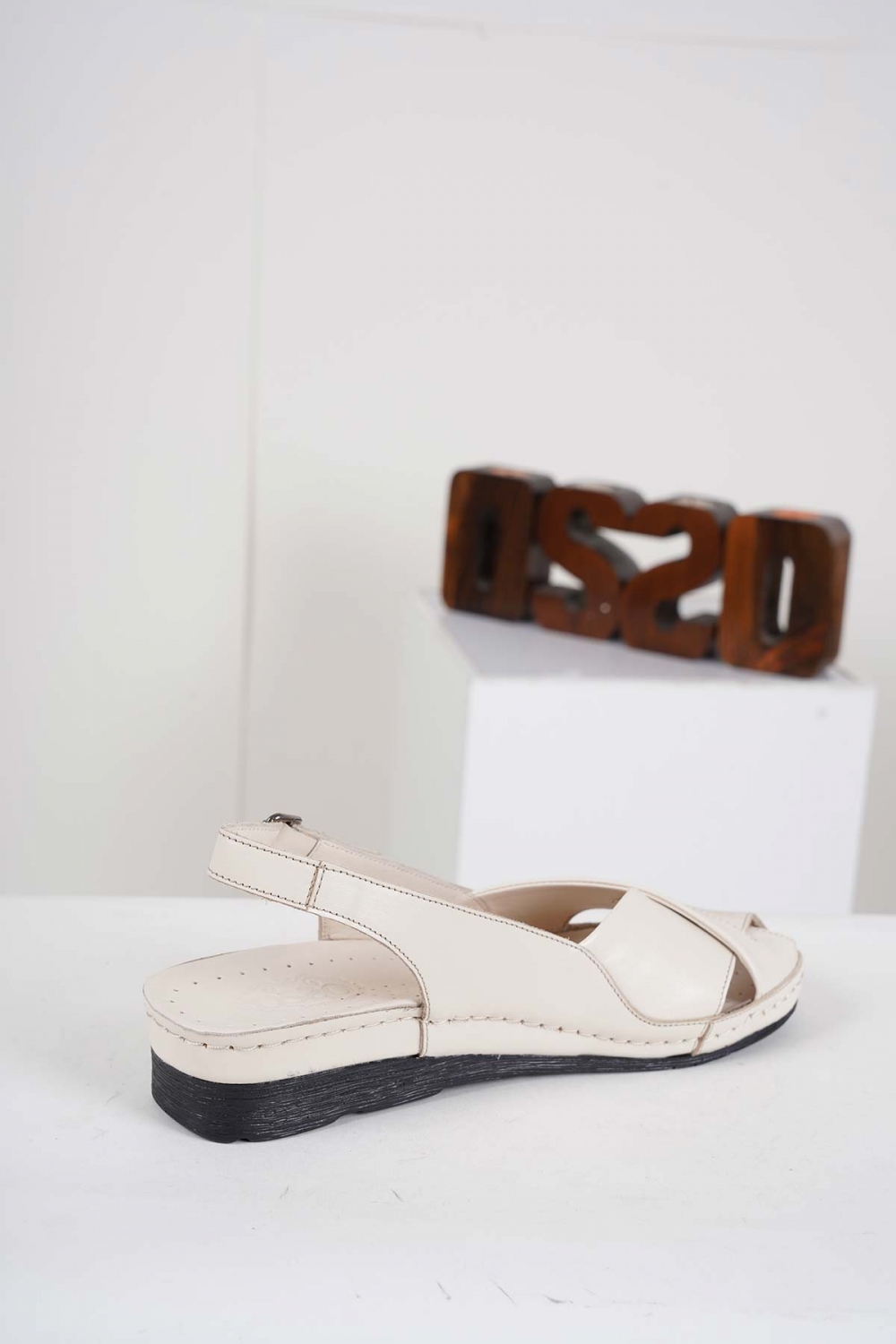 Hakiki Deri Bej Kadın Komfort Sandalet 241177504