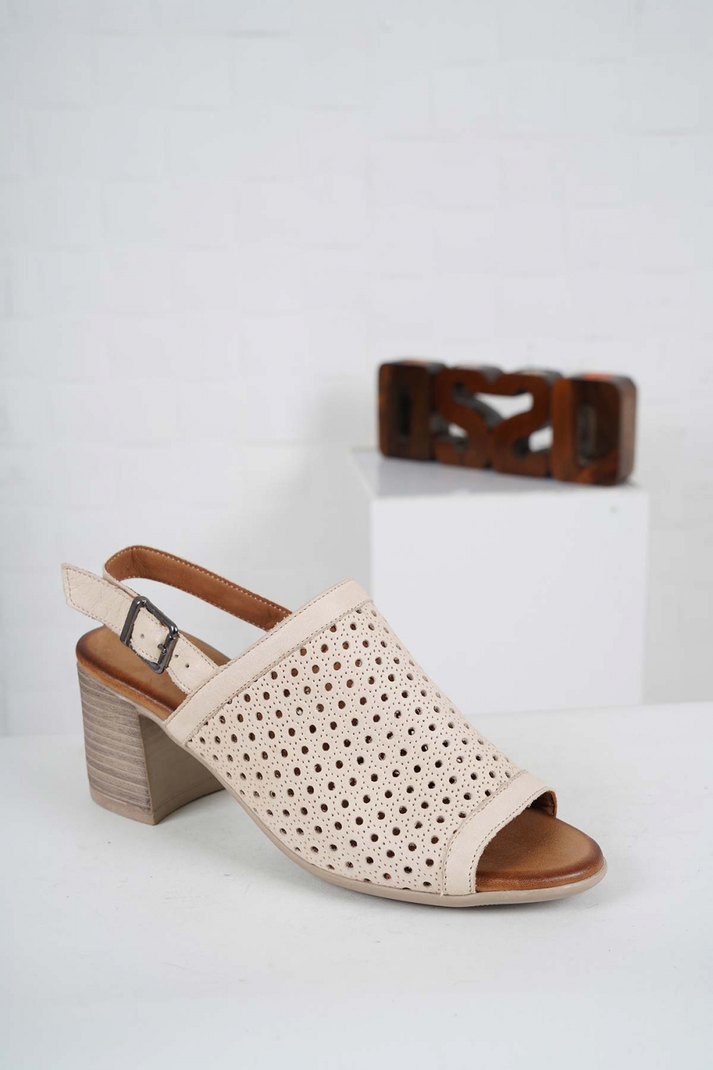 Hakiki Deri Bej Kadın Topuklu Sandalet 241126510