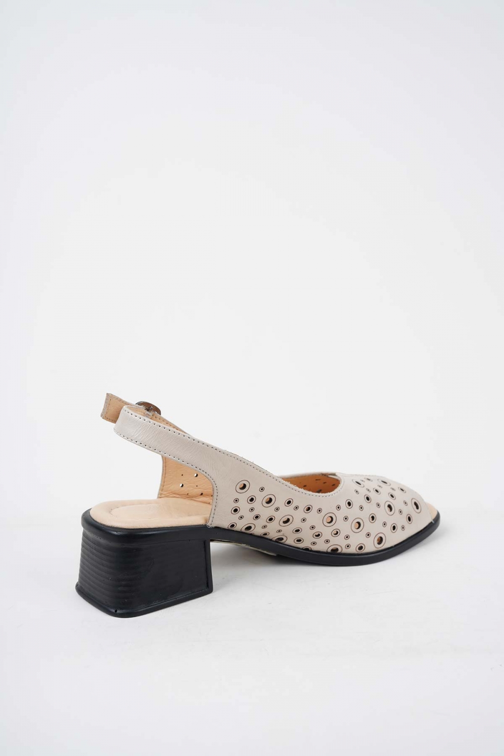 Hakiki Deri Bej Kadın Topuklu Sandalet 241189503