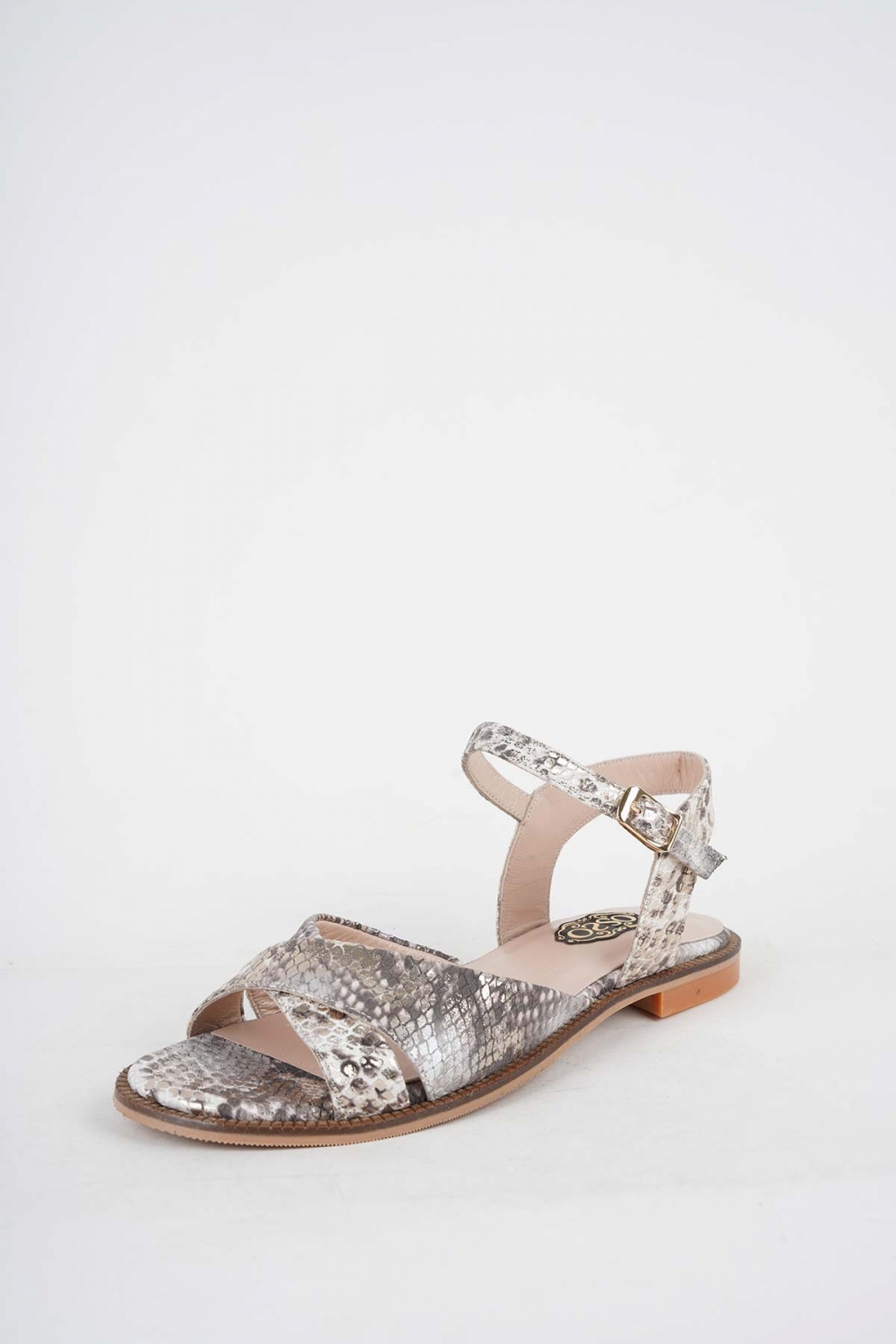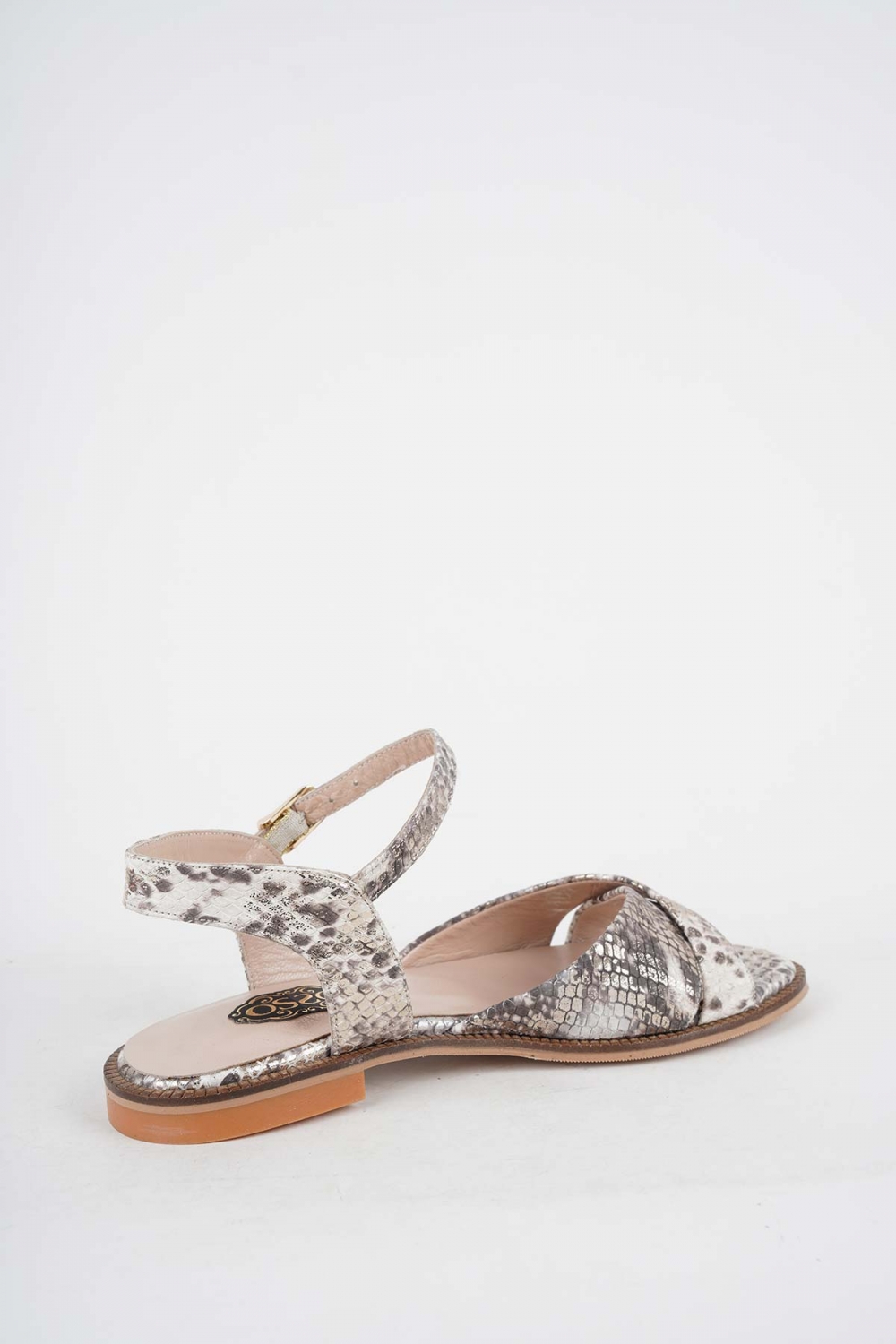 Hakiki Deri Bej Yılan Kadın Düz Sandalet 251127507
