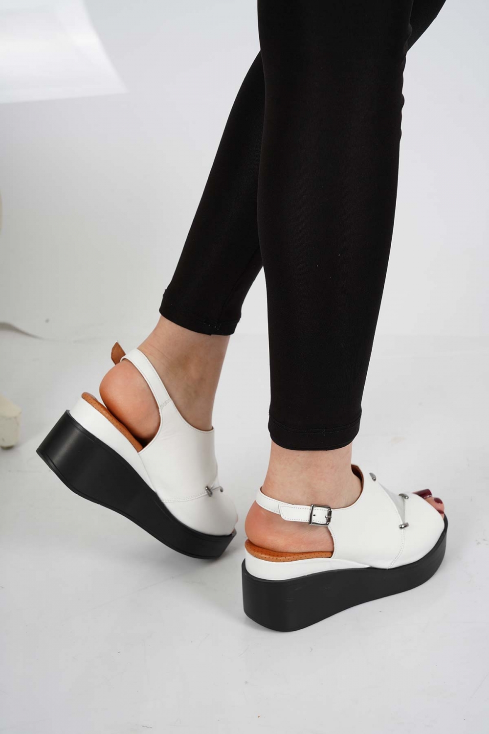 Hakiki Deri Beyaz-Gümüş Kadın Dolgu Topuk Sandalet 231229509