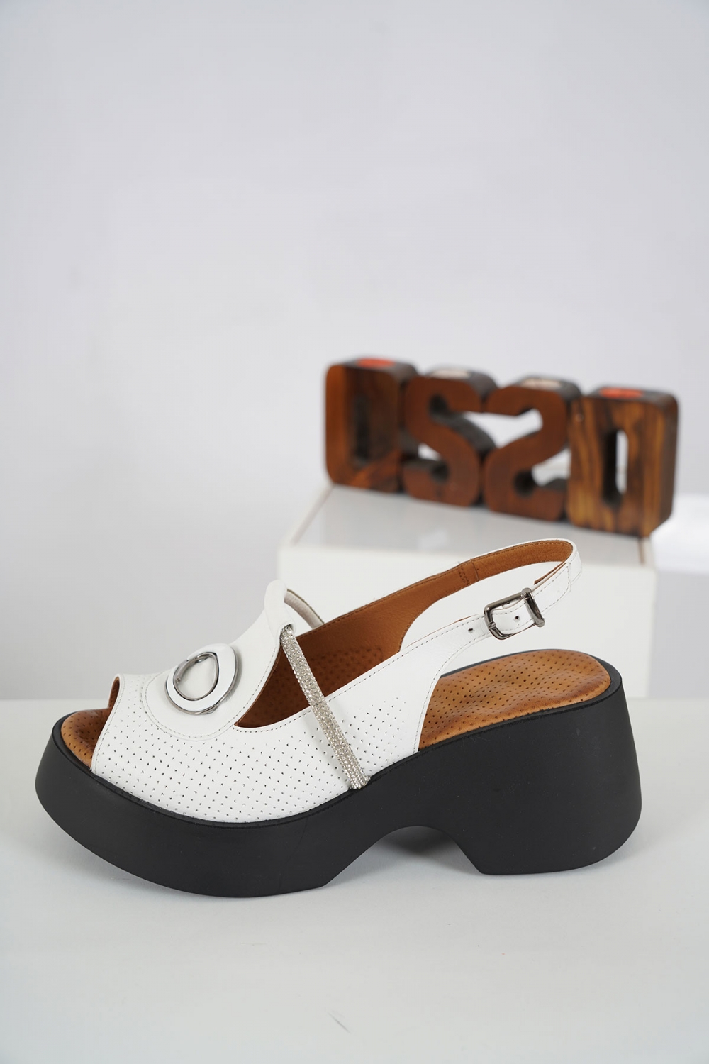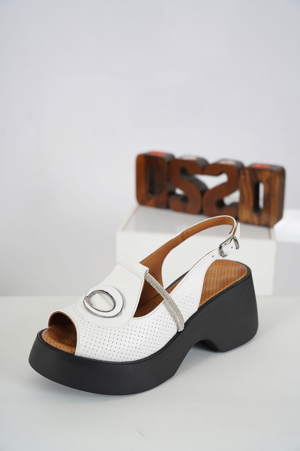 Hakiki Deri Beyaz Kadın Dolgu Topuk Sandalet 231229506