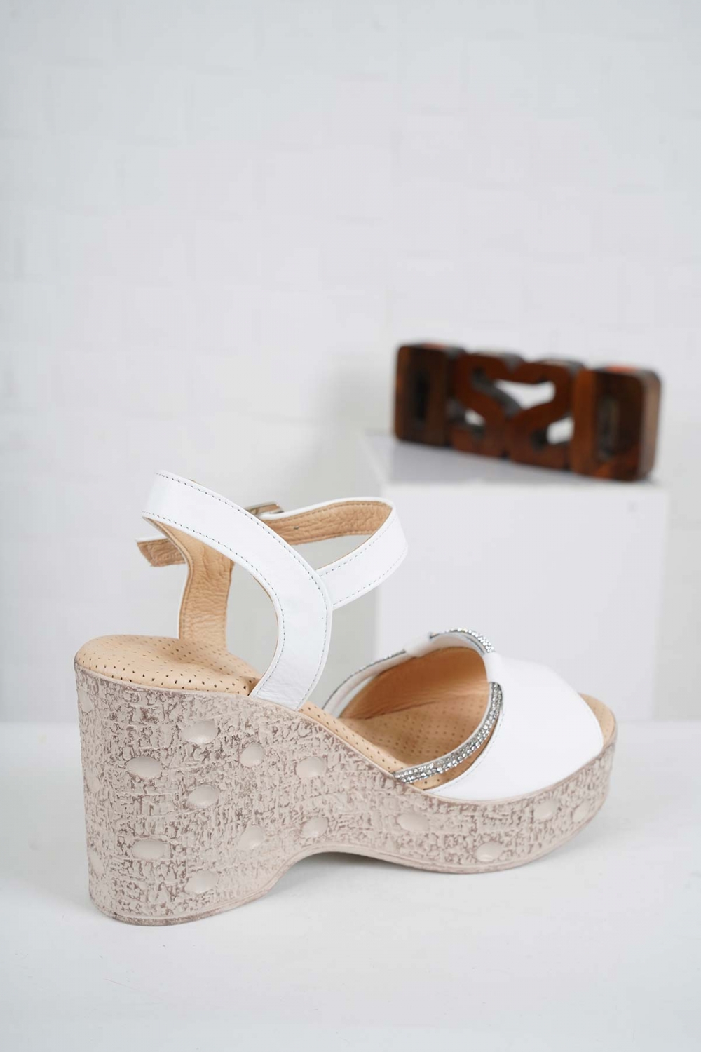 Hakiki Deri Beyaz Kadın Dolgu Topuk Sandalet 241136505