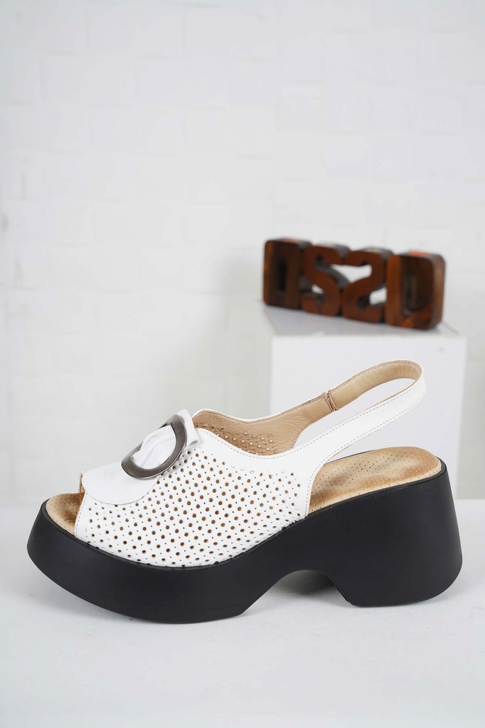 Hakiki Deri Beyaz Kadın Dolgu Topuk Sandalet 241229504