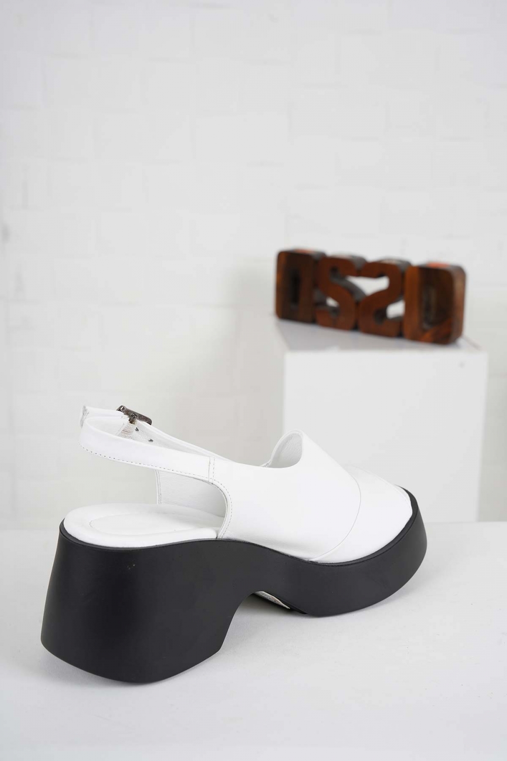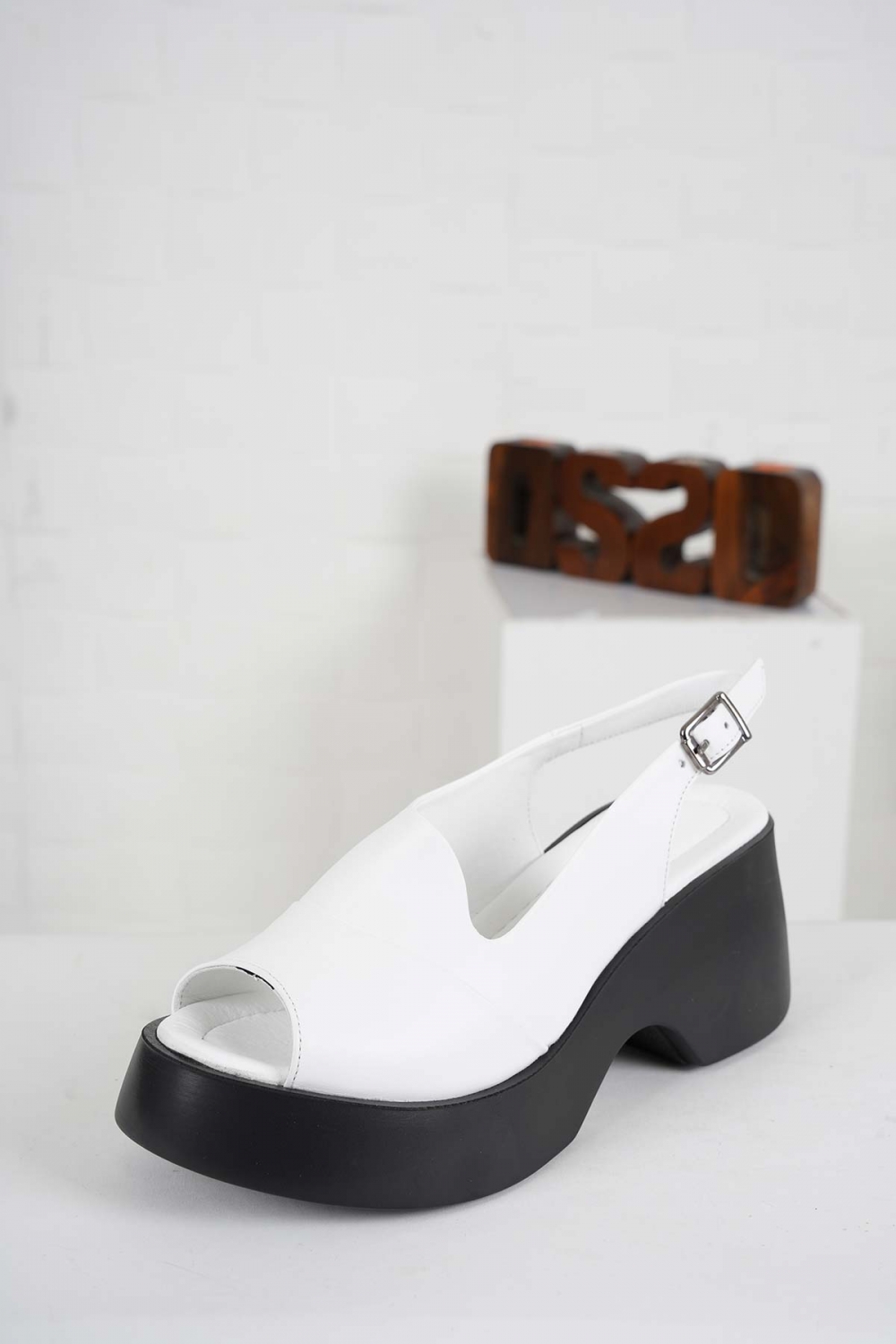 Hakiki Deri Beyaz Kadın Dolgu Topuk Sandalet 241229505