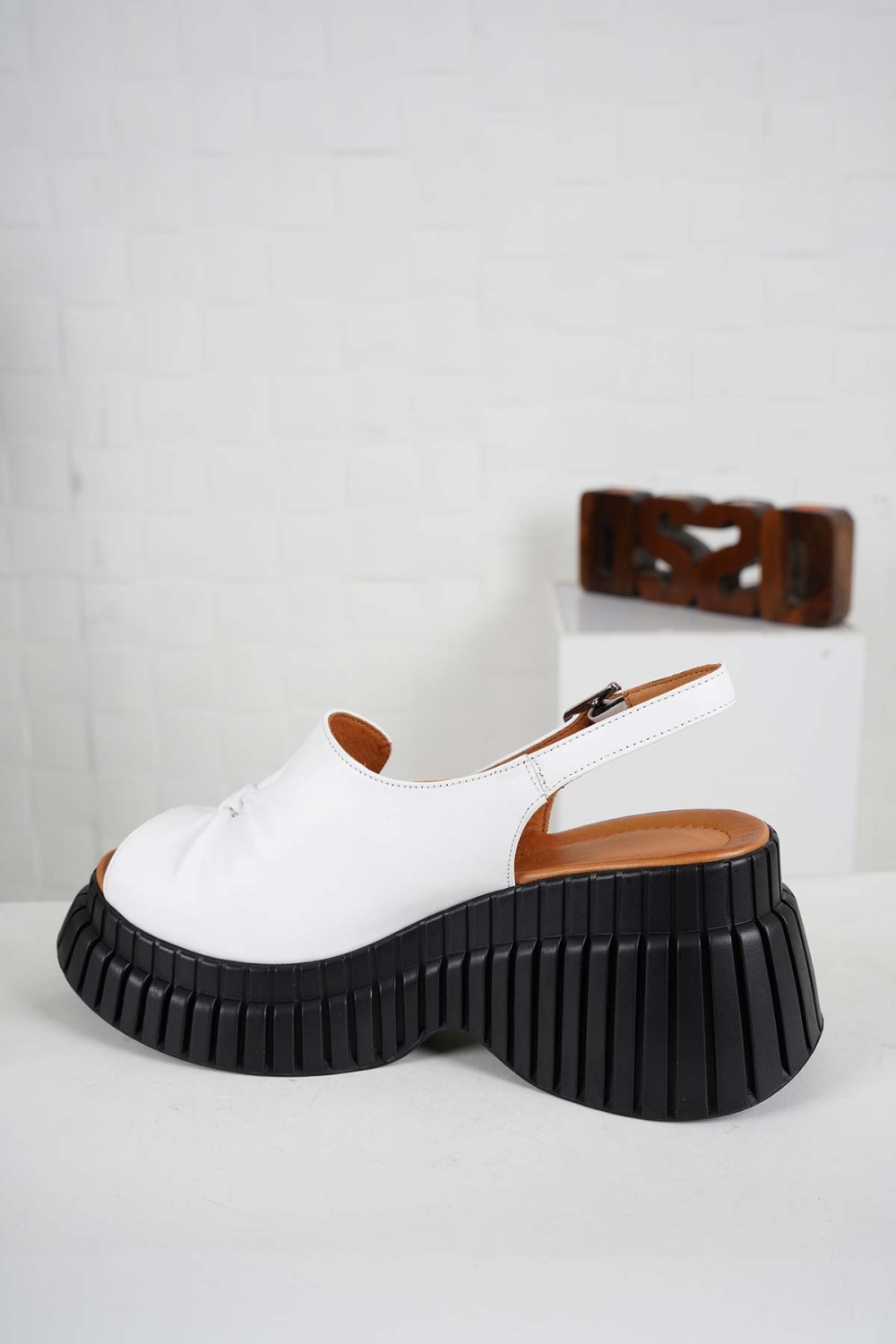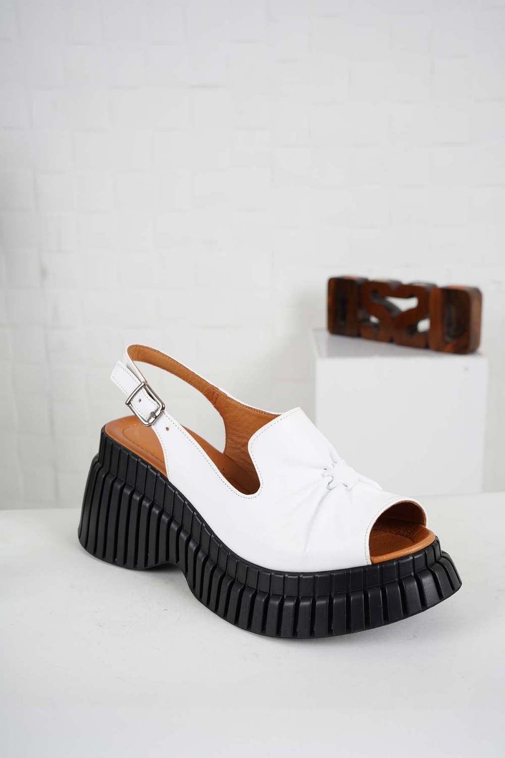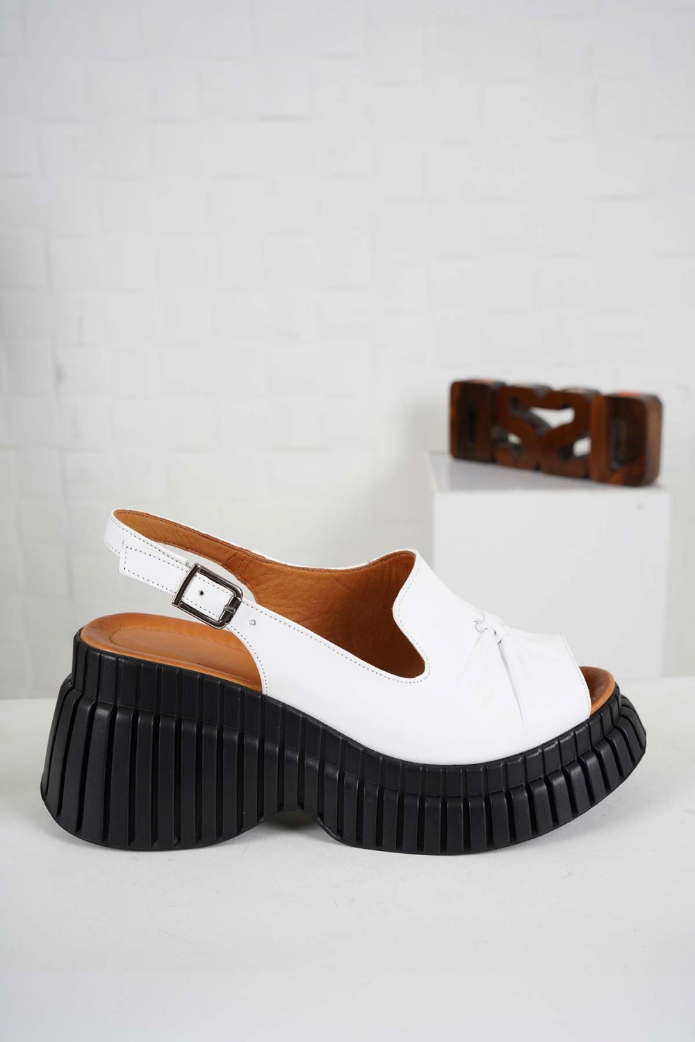 Hakiki Deri Beyaz Kadın Dolgu Topuk Sandalet 241229511