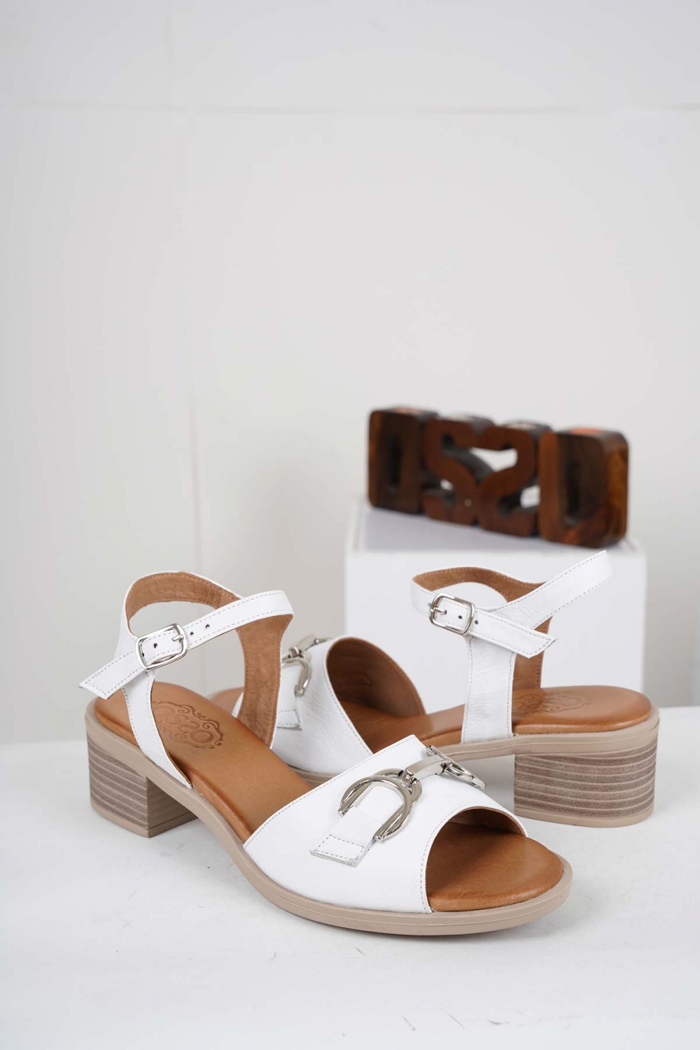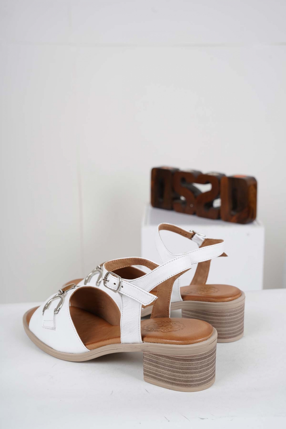 Hakiki Deri Beyaz Kadın Topuklu Sandalet 241126505