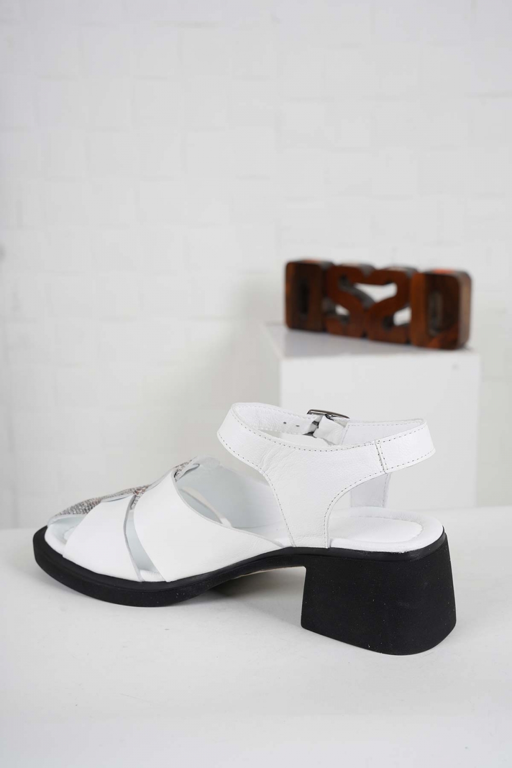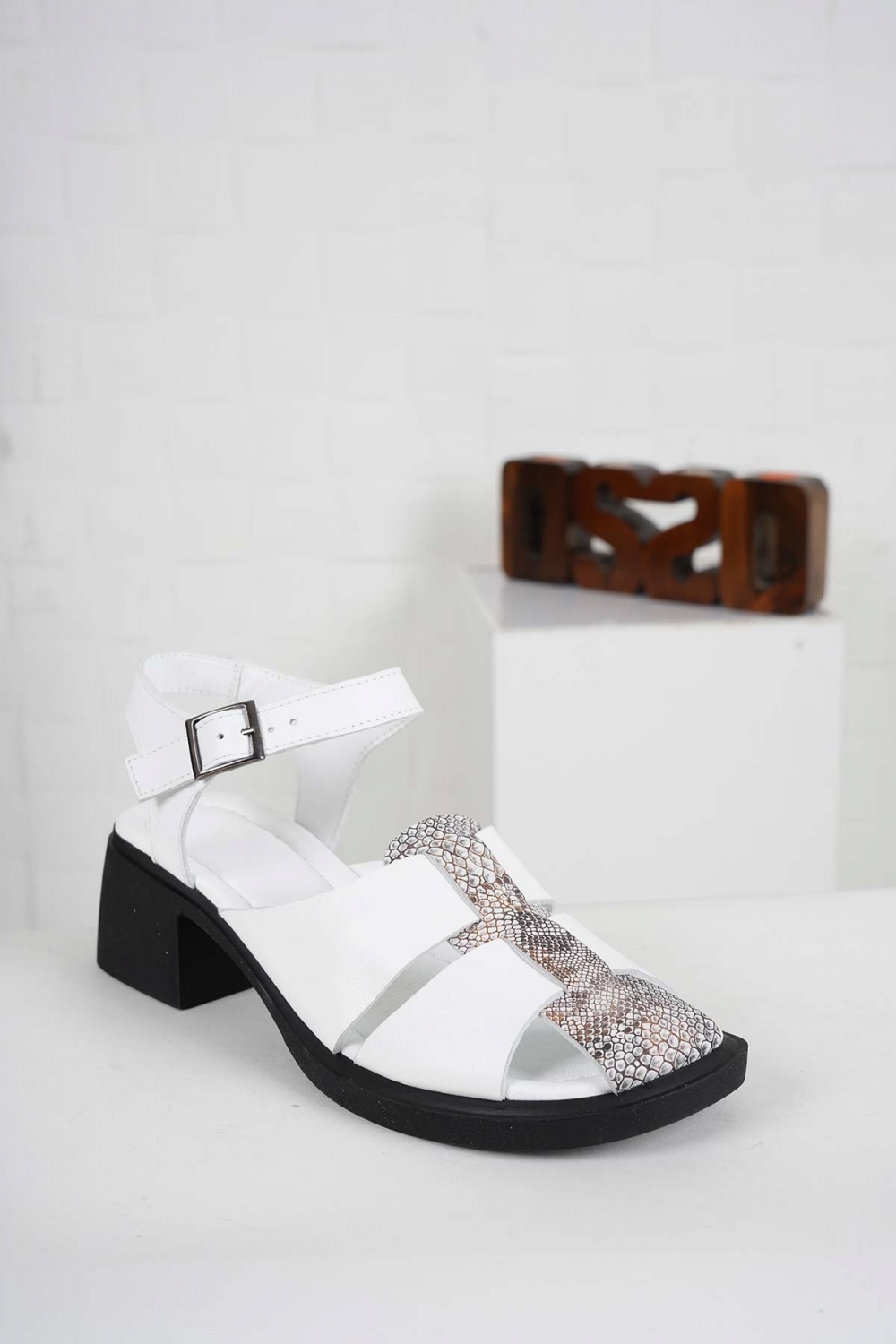 Hakiki Deri Beyaz-Yılan Baskı Kadın Topuklu Sandalet 241225501