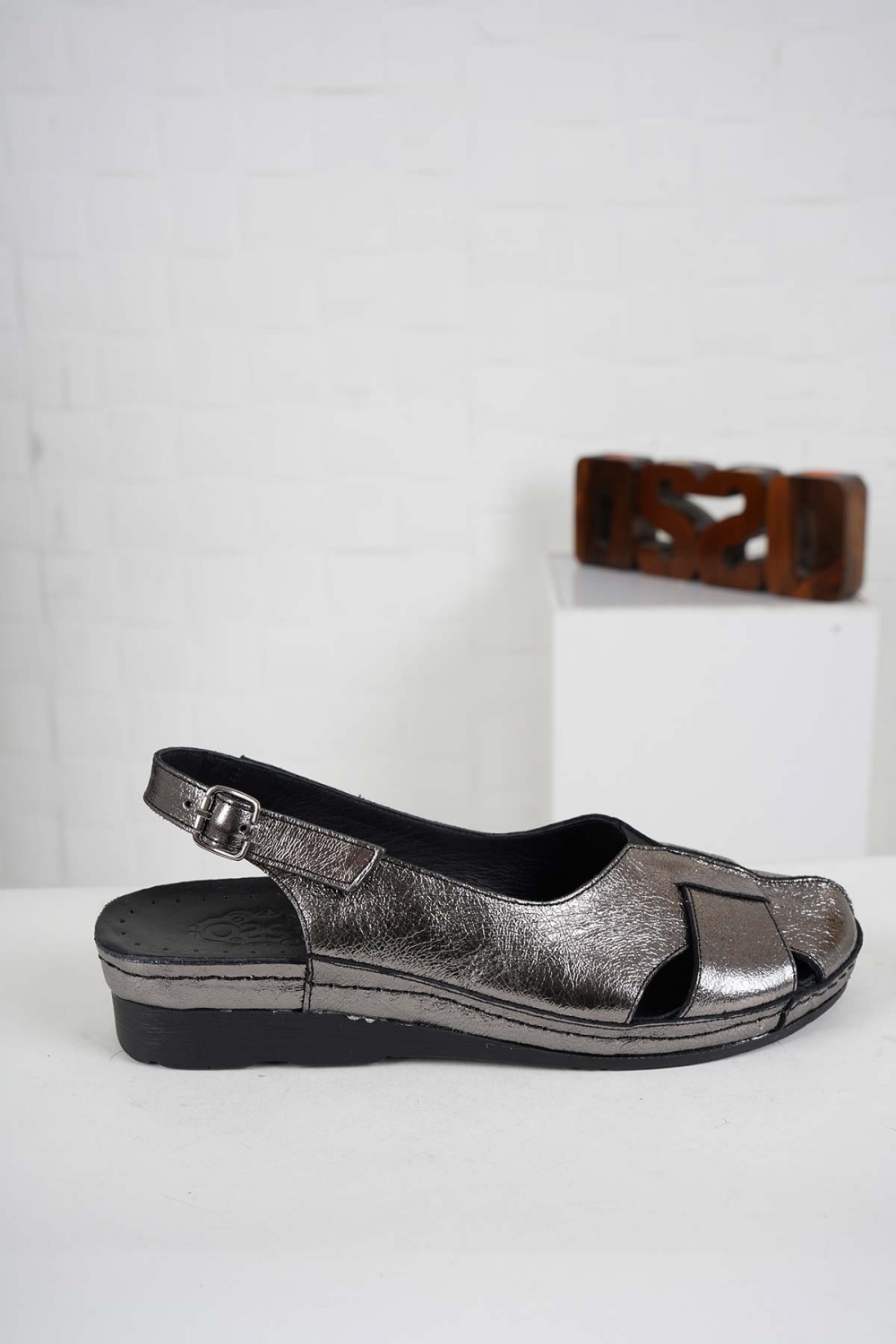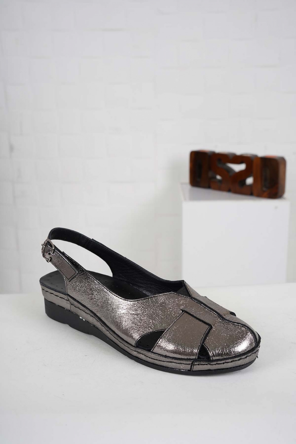 Hakiki Deri Titanyum Kadın Burun Kapalı Sandalet 261141507
