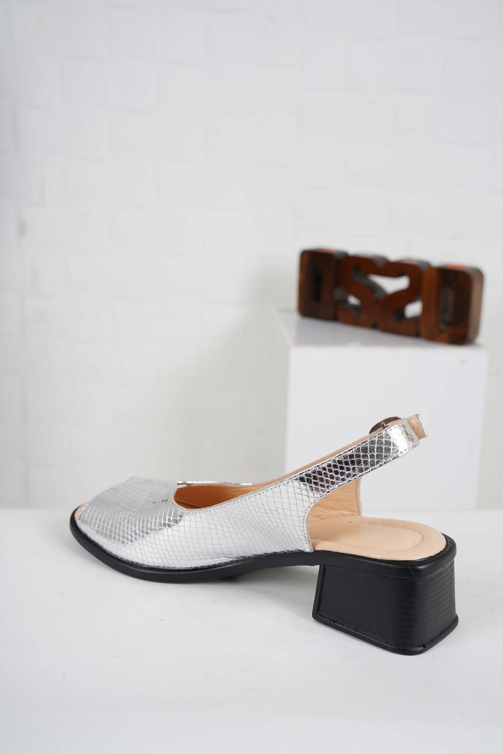Hakiki Deri Gümüş Kadın Topuklu Sandalet 241189502
