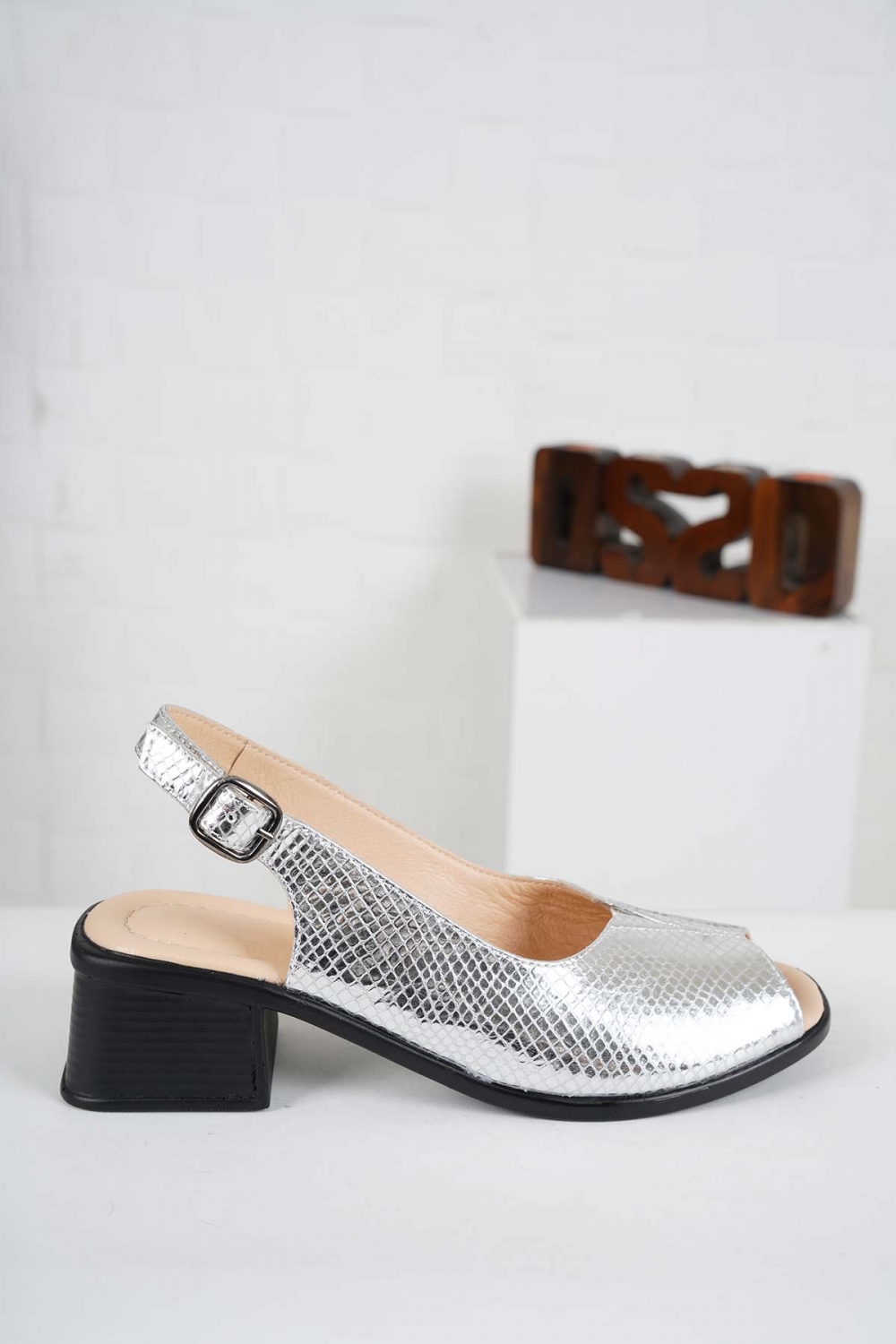 Hakiki Deri Titanyum Kadın Burun Kapalı Sandalet 261141507