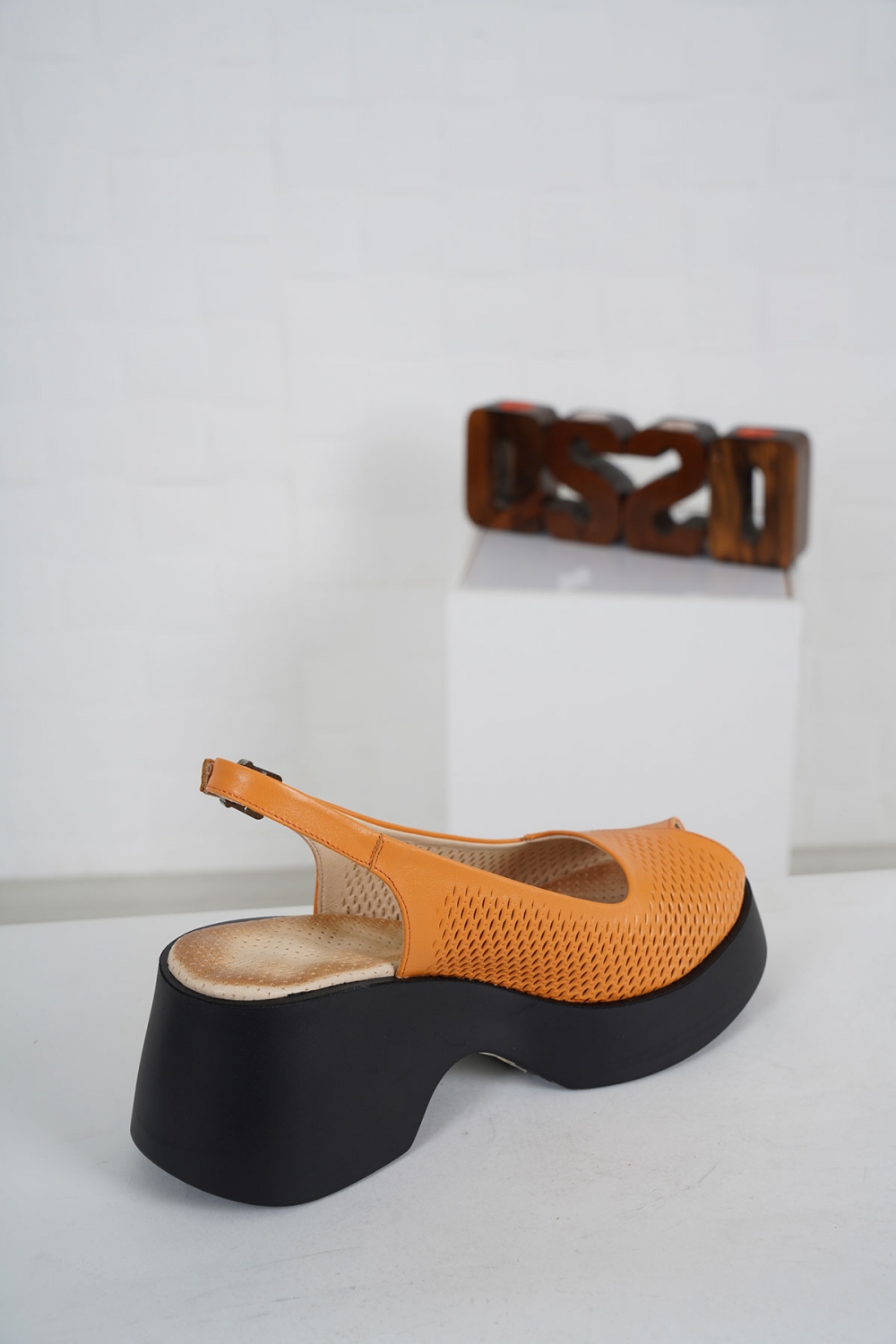 Hakiki Deri Kayısı Kadın Dolgu Topuk Sandalet 231229502