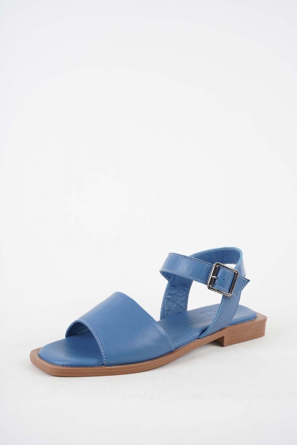 Hakiki Deri Kot Mavi Kadın Düz Sandalet 251103501