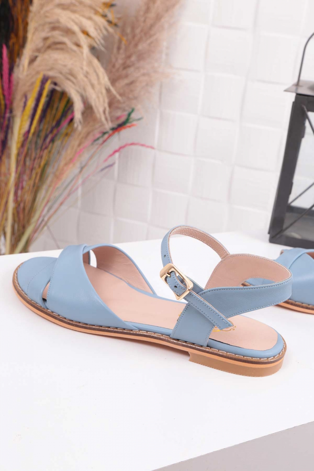 Hakiki Deri Mavi Kadın Düz Sandalet 211127514