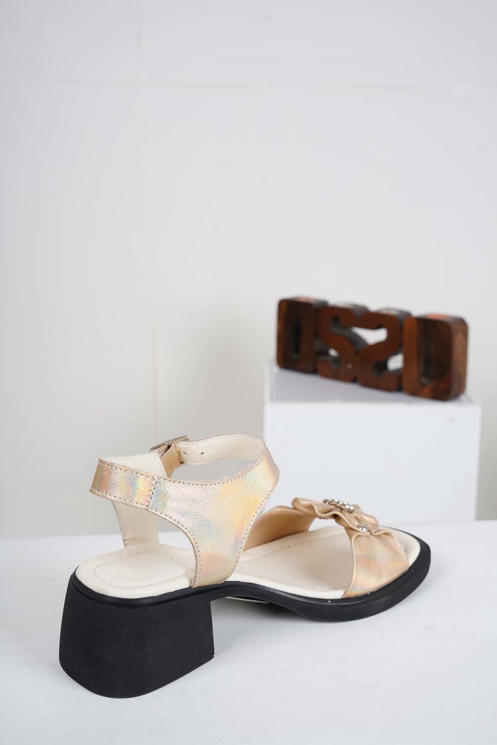 Hakiki Deri Metalik Gold Kadın Topuklu Sandalet 241225505