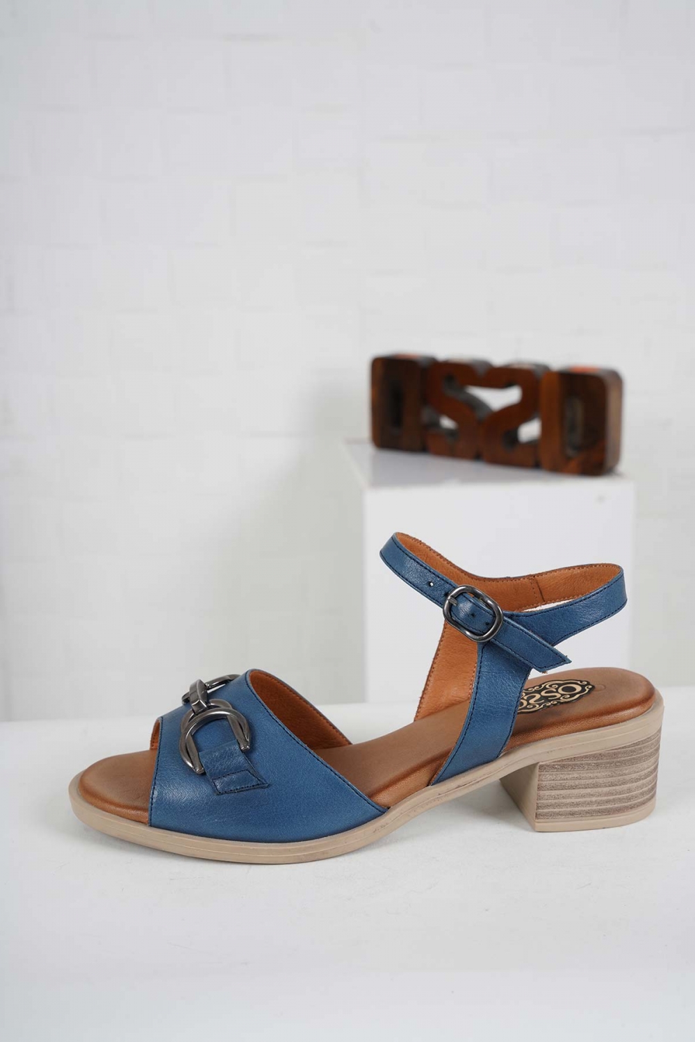 Hakiki Deri Petrol Mavi Kadın Topuklu Sandalet 241126505