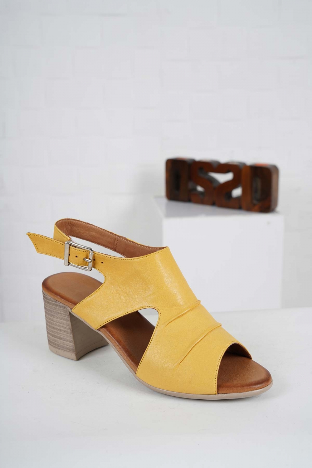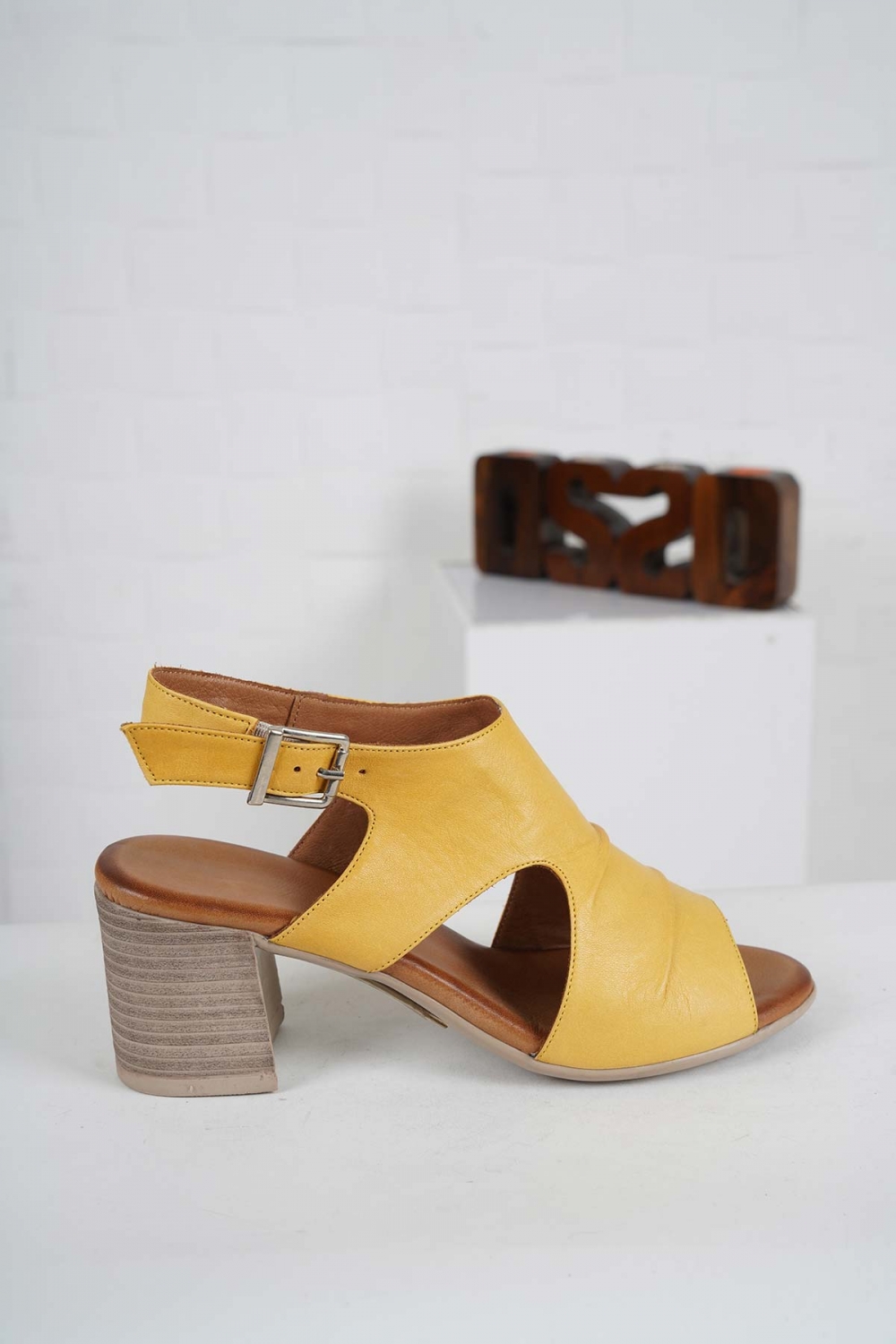 Hakiki Deri Sarı Kadın Topuklu Sandalet 241126511